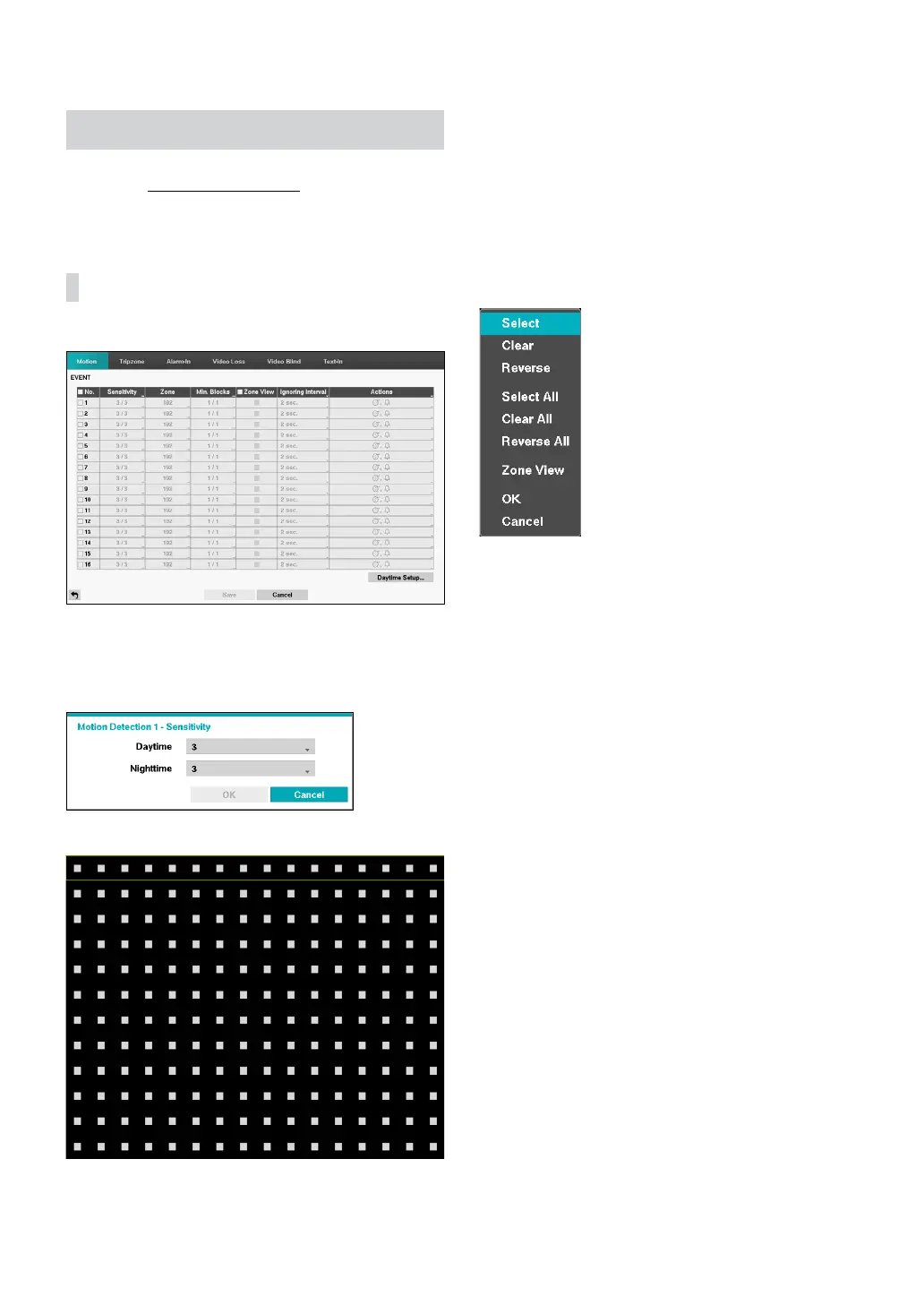 • Zone: Dene the motion detection block.
