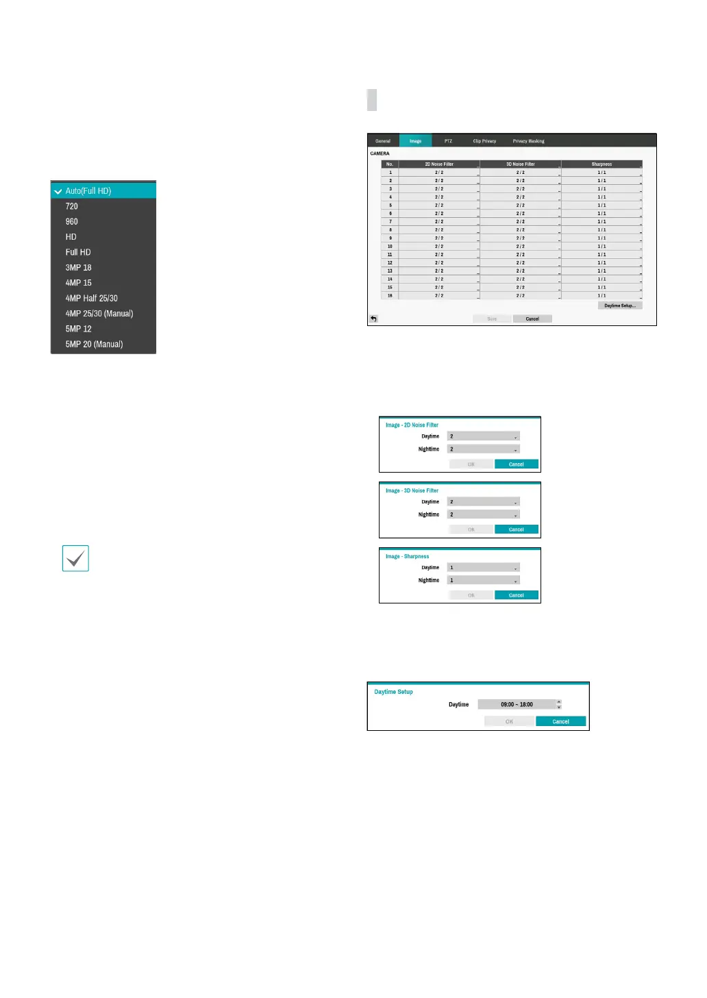 • When selecting Auto, the 720, HD, Full HD, 3MP