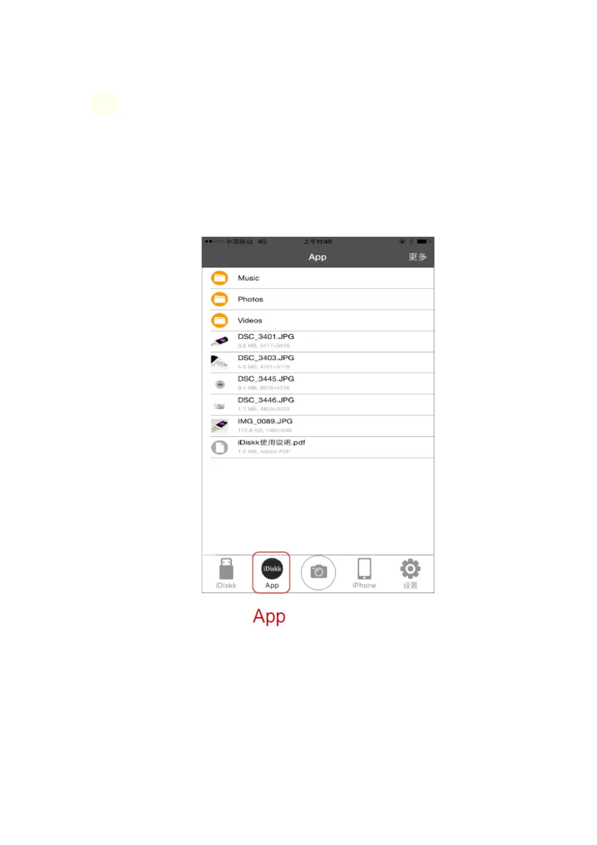 iDiskk mini - Using the App Section; App Section File Storage