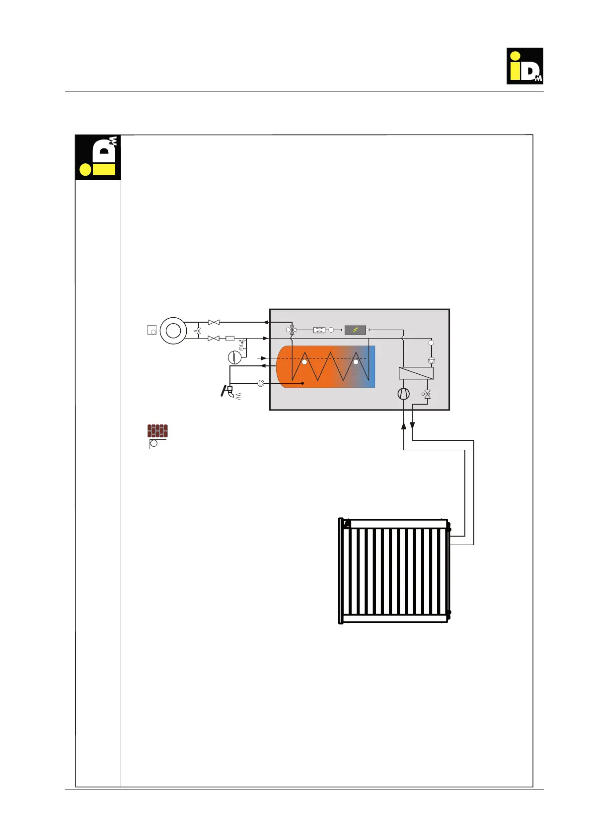 Note: This is only a tentative suggestion for installing an IDM heat pump in the heating system. This suggestion replaces no