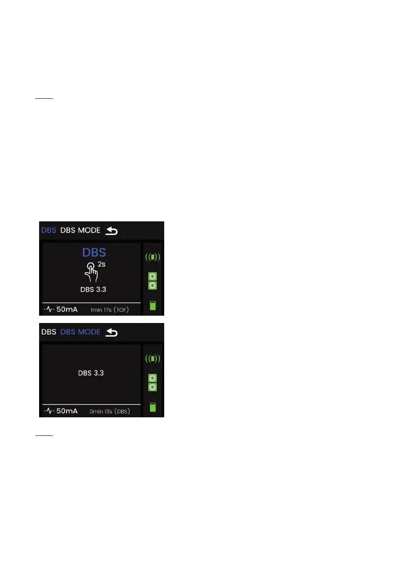 holding the selection wheel, or the “DBS 3.2” stimulation after