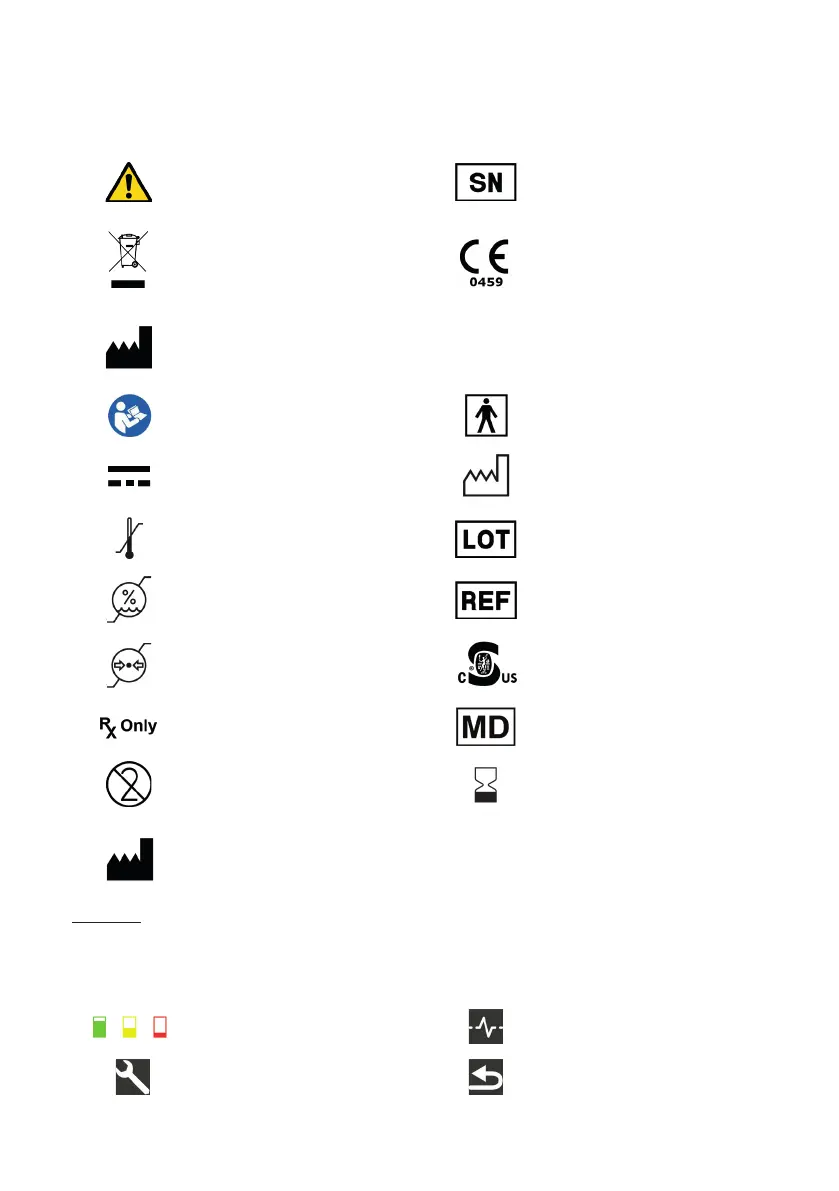 Symbols displayed on the ToFscan screen