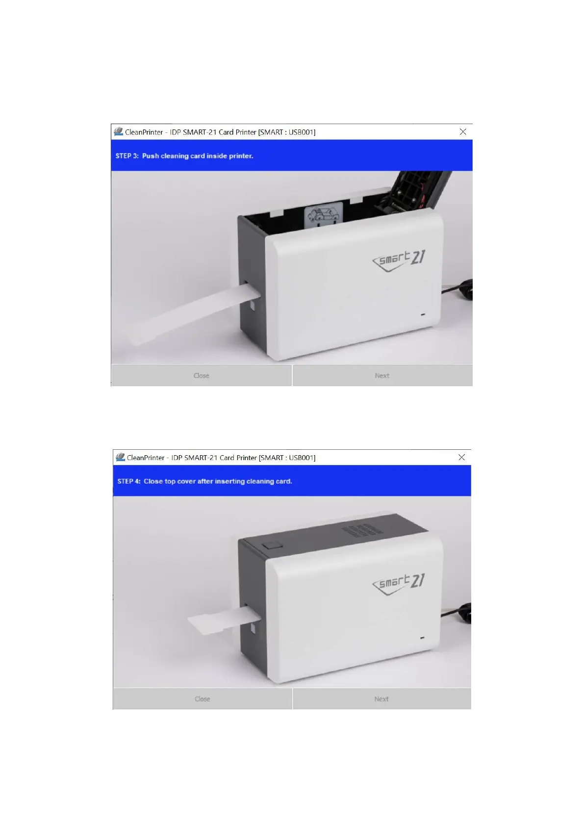 top cover is closed, cleaning card will be moving back and forth to clean.