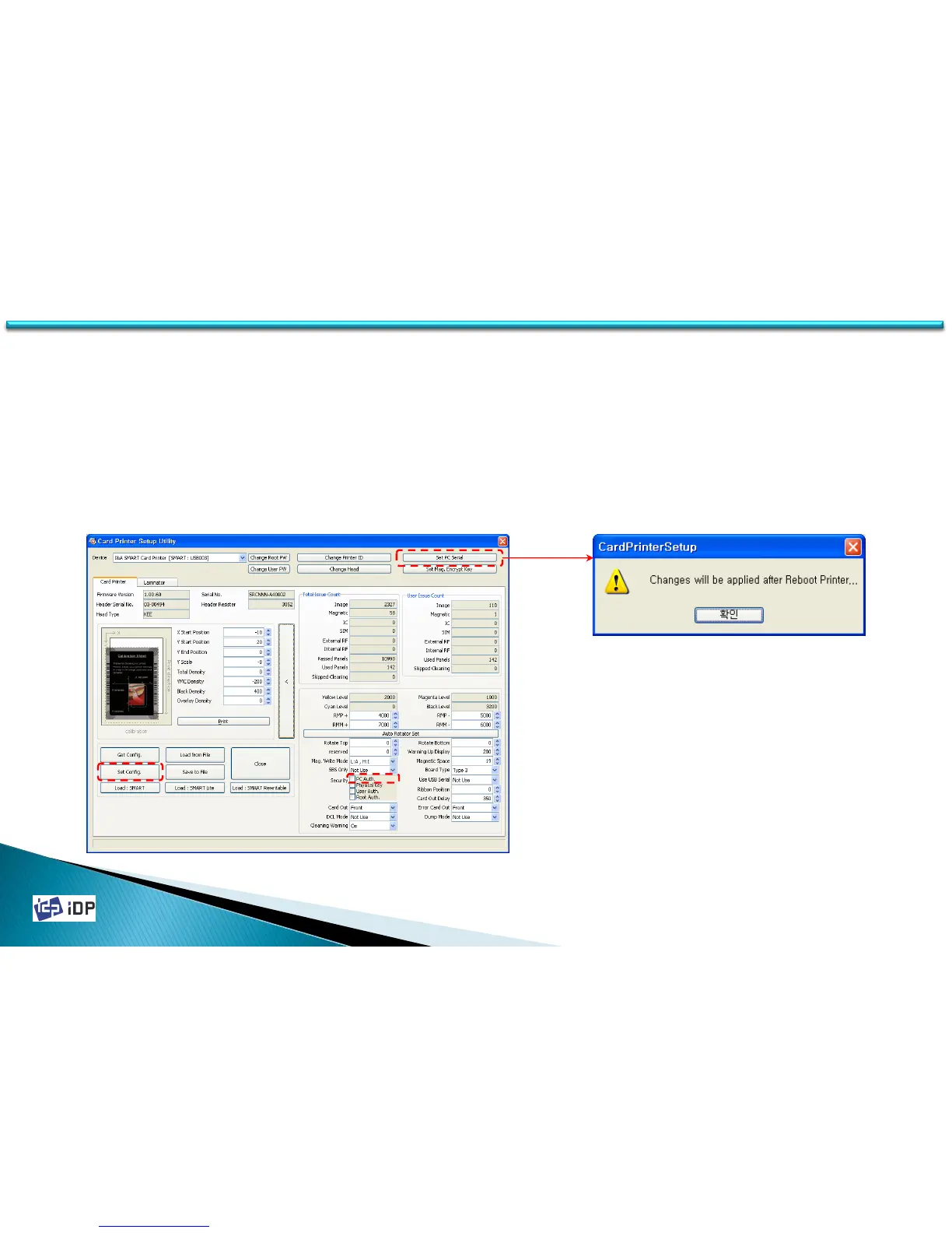 PC Auth. will be activated after the printer’s rebooting. When connect SMART printer which is applied PC