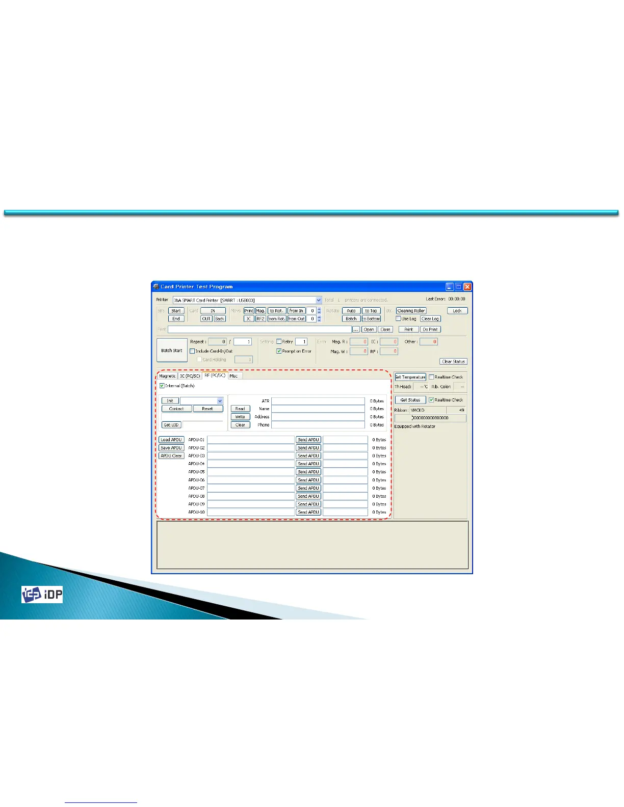 “RF (PC/SC)” tap of CardPrinterTest program.