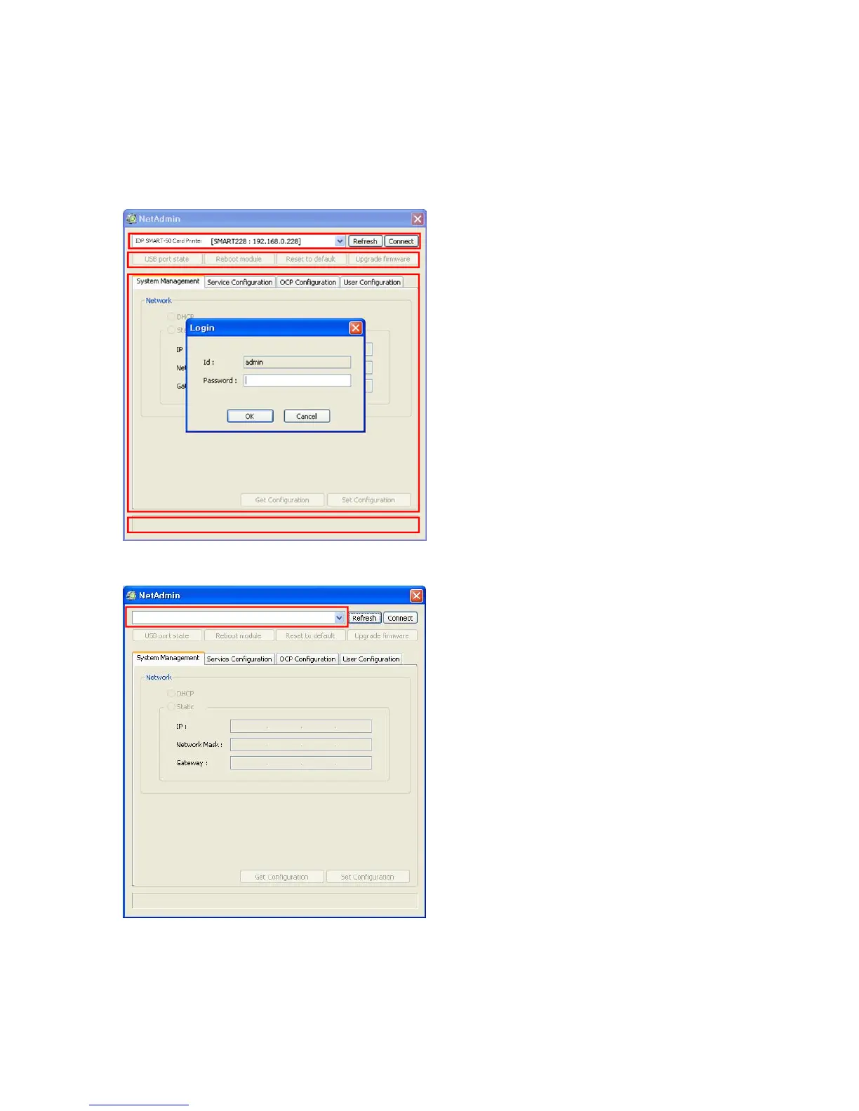 Please run NetAdmin.exe in the SMART-50 installation CD to set or change network configuration.
