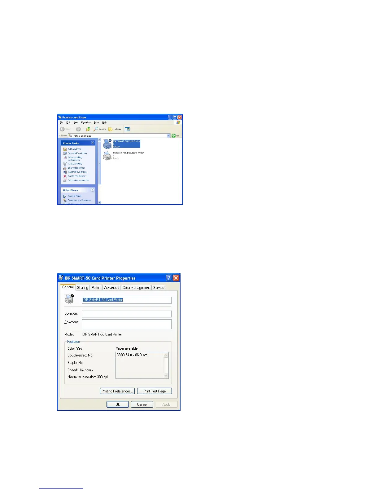 and Printers” and right-click “IDP SMART-50 Card Printer”. Click “Properties”. For