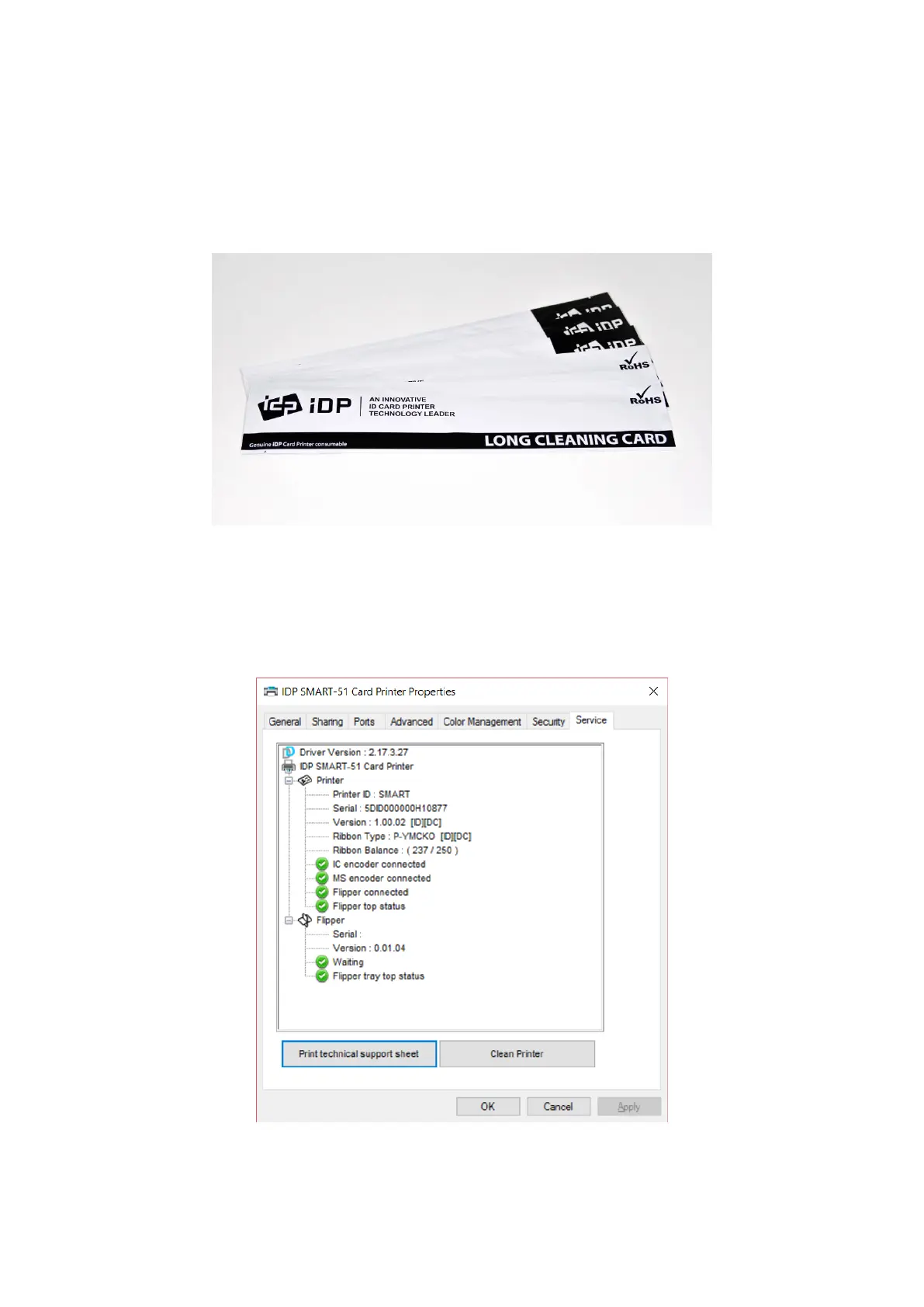If the exclusive long cleaning card is ready, click the “Clean Printer” in the service tab of