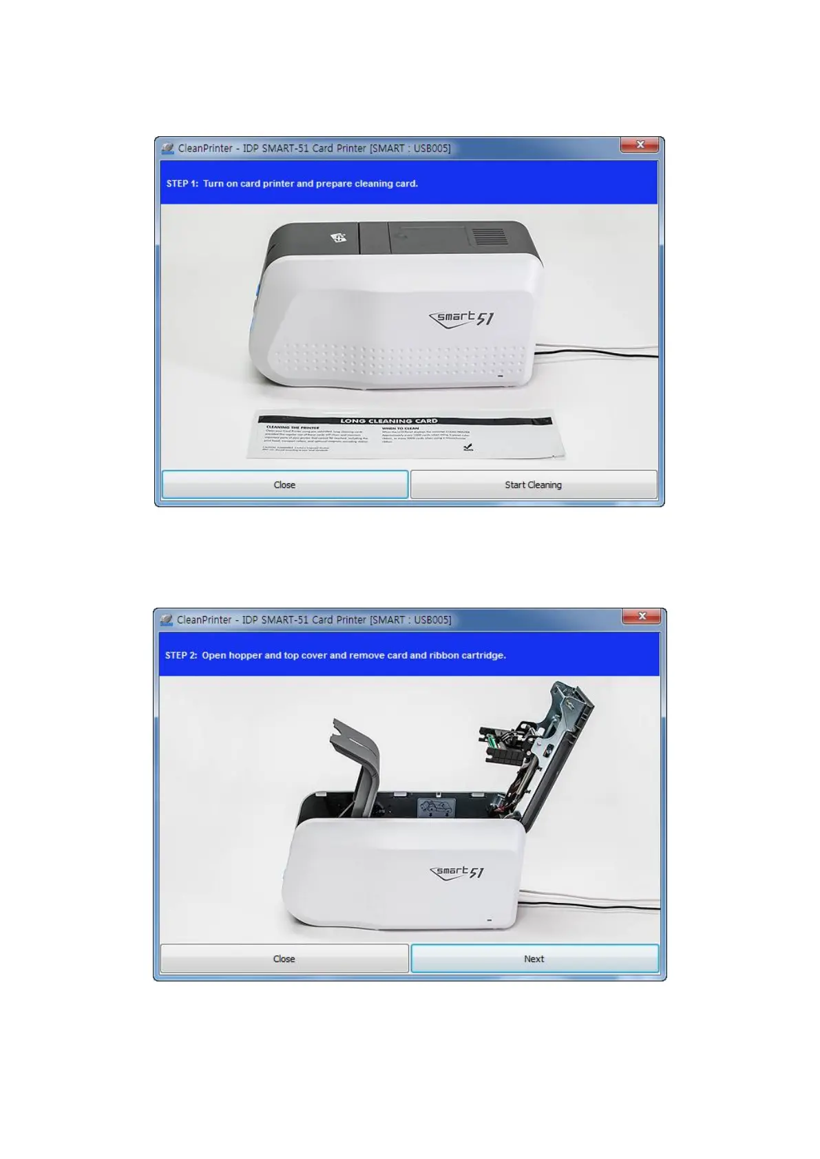 idp SMART-31R - Figure 95 Printer Cleaning Step 1; Figure 96 Printer Cleaning Step 2
