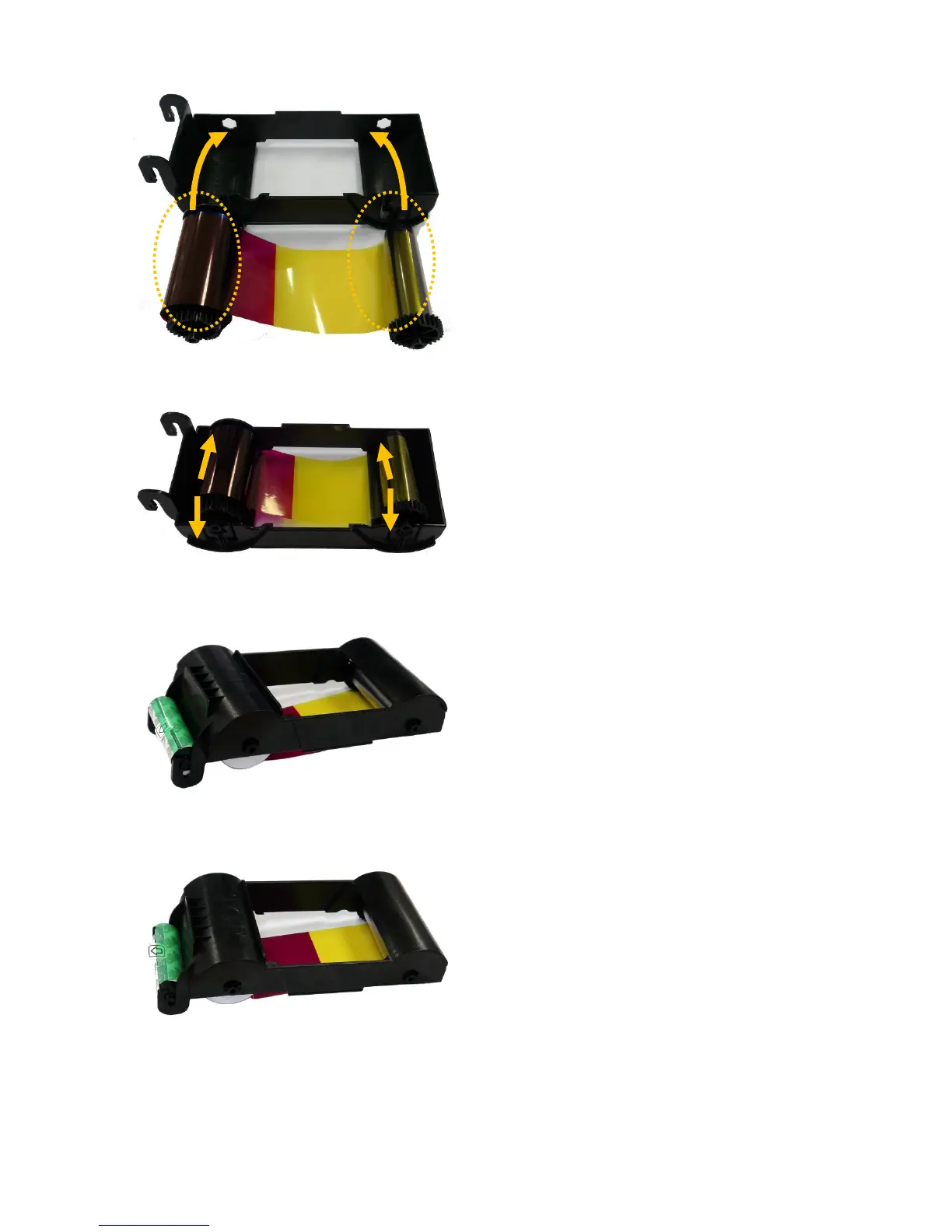 idp SMART-50S - Pic.13 Loading the Ribbon 1; Pic.14 Loading the Ribbon 2; Pic.15 Installing the Cleaning Roller; Pic.16 Peeling the Protective Wrapper