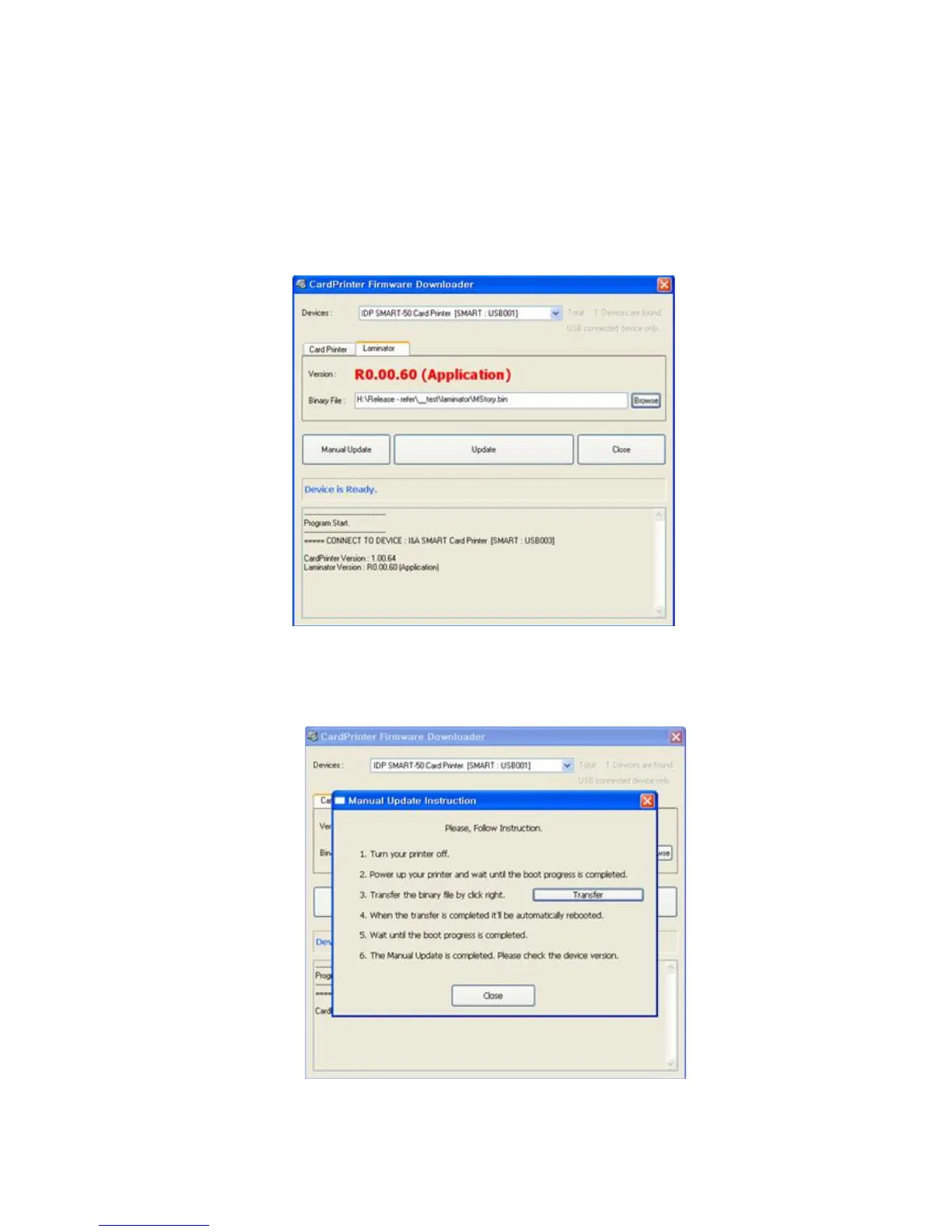printer. If you click “Browse” and select the new firmware, “Manual Update” and ”Update” are activated.