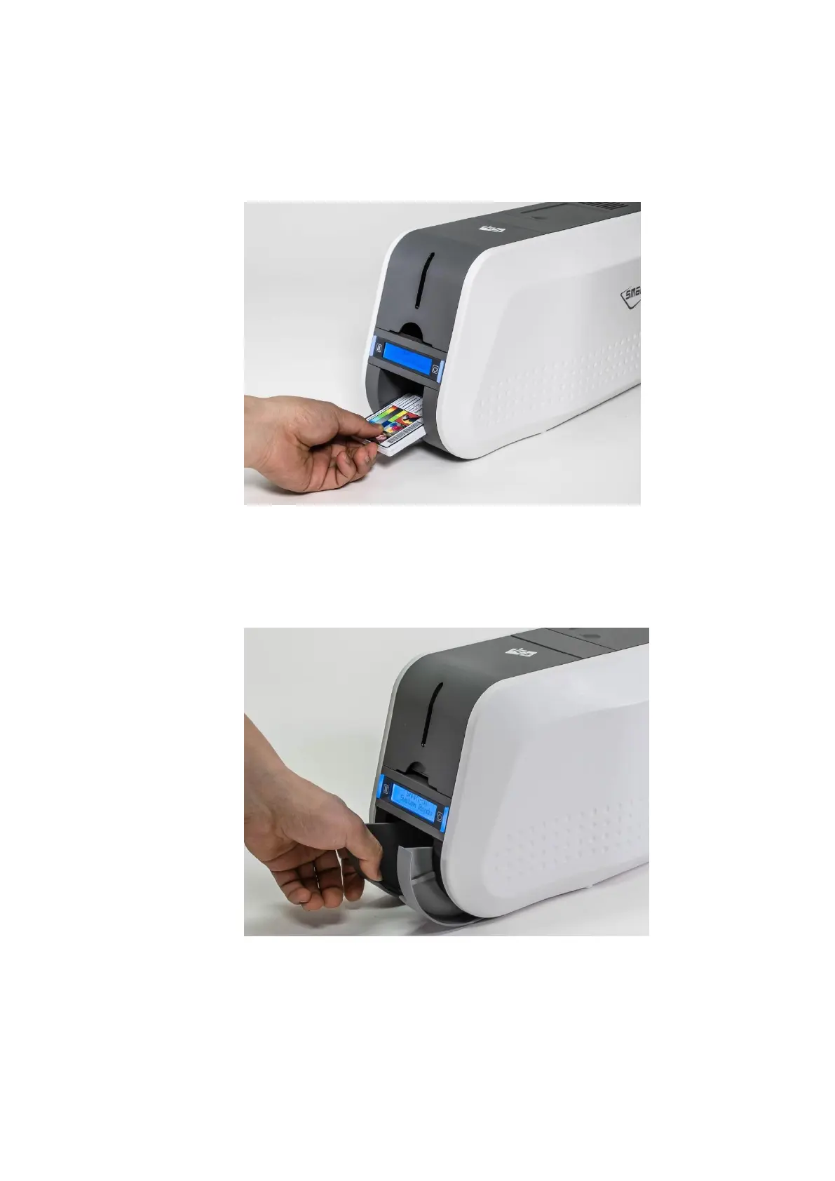 Printed cards are passed out to the stacker of front bottom side of SMART printer.
