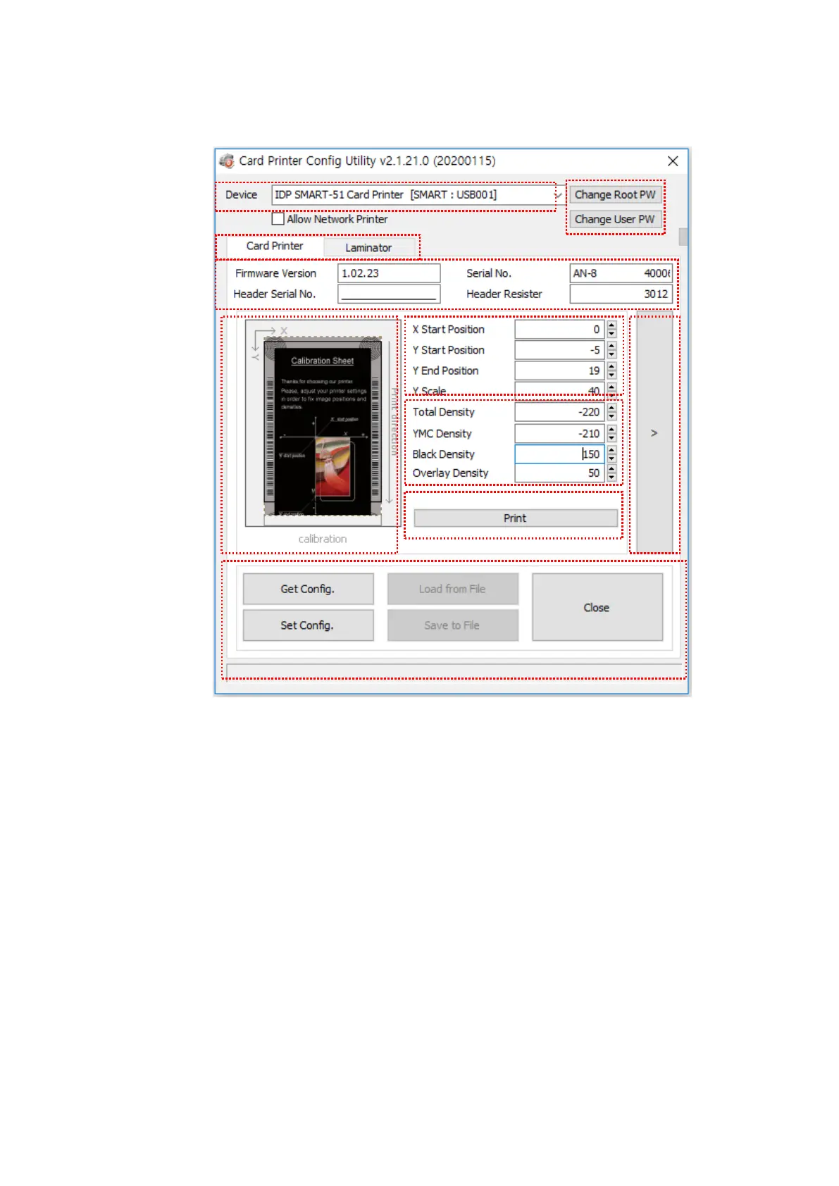 Device: You can select a printer using pull-down menu. “IDP SMART-51 Card