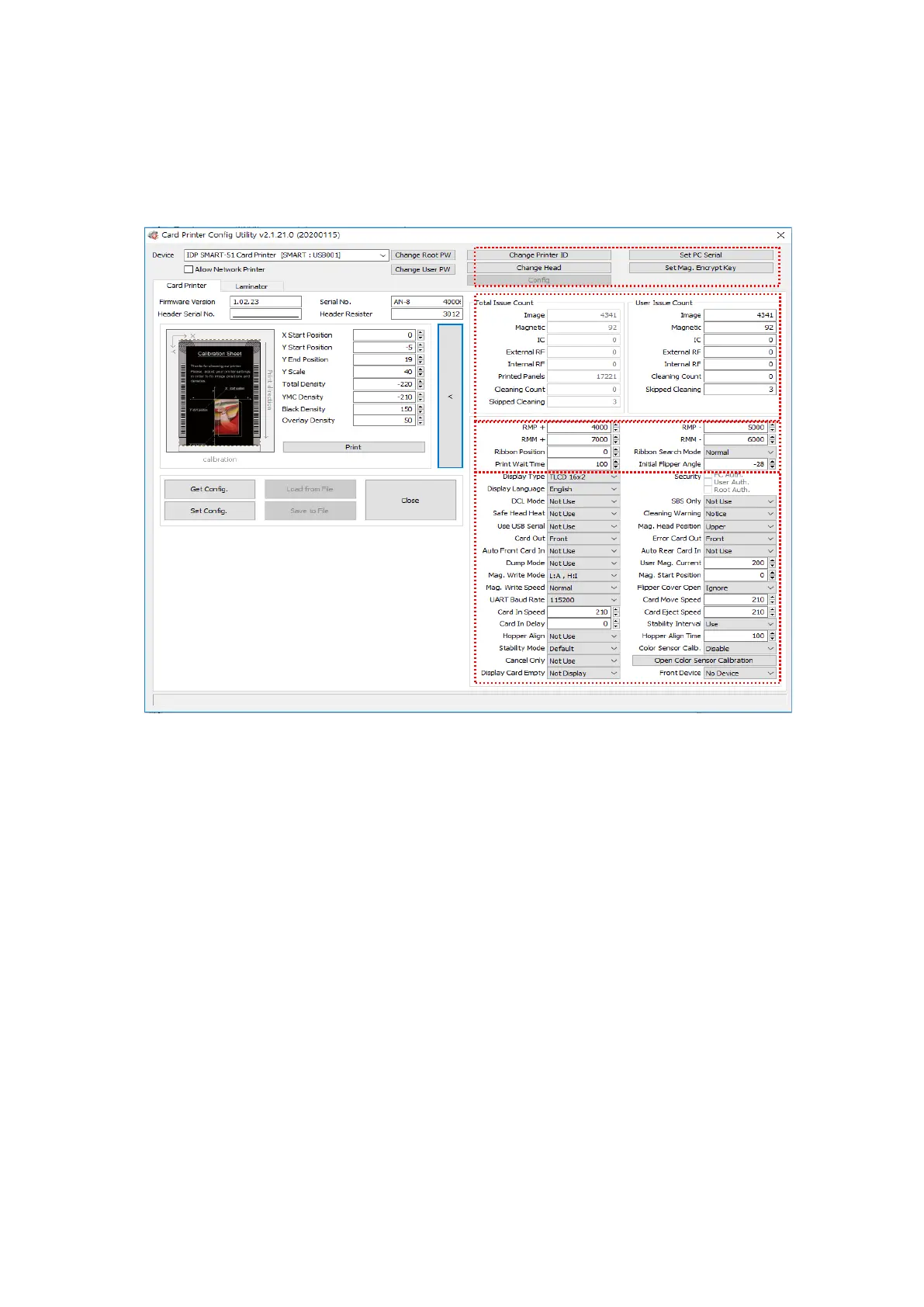 ① You can set Printer ID, PC serial, Print head and Magnetic encryption key.