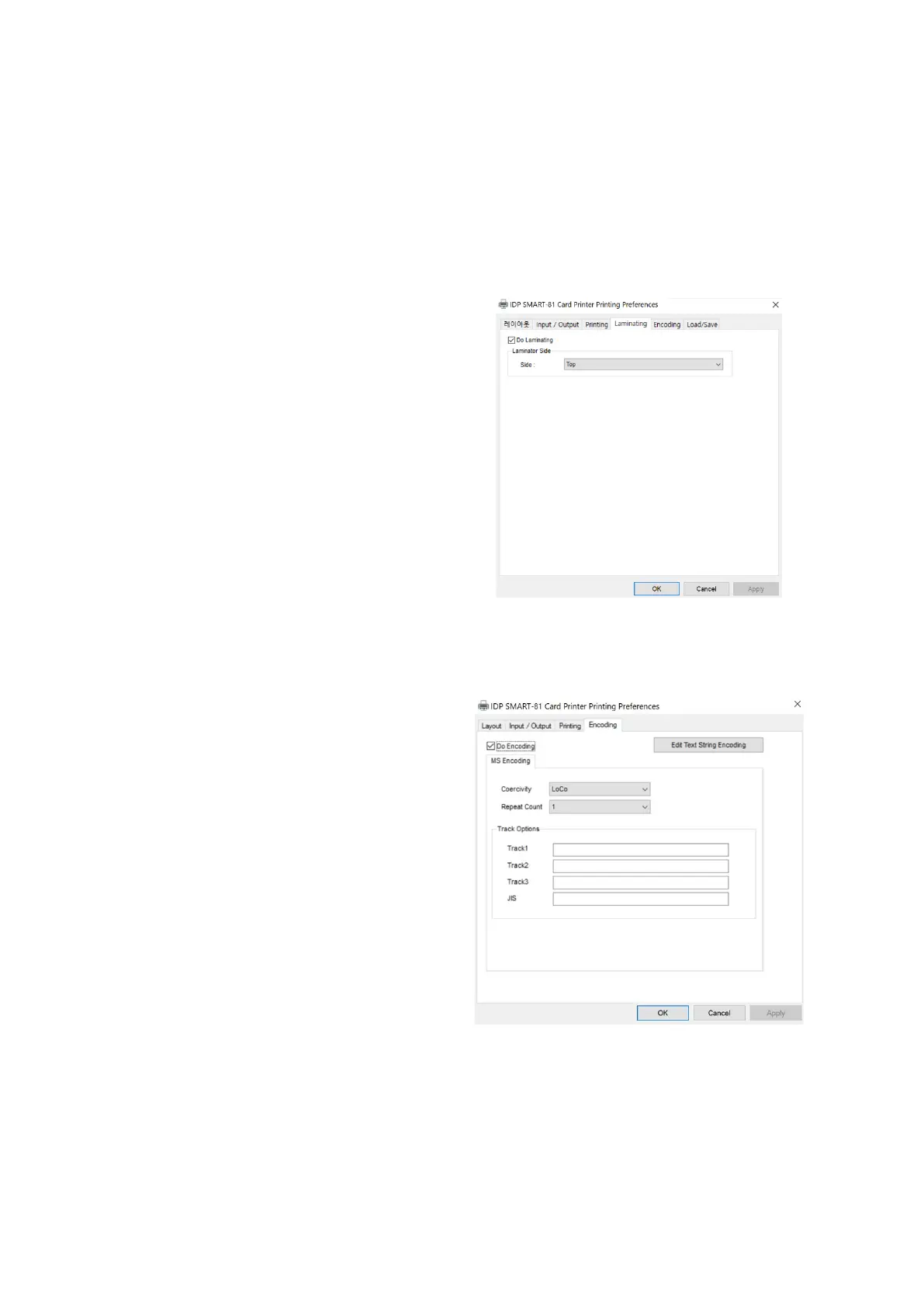 Laminator Side: you can select not use, top