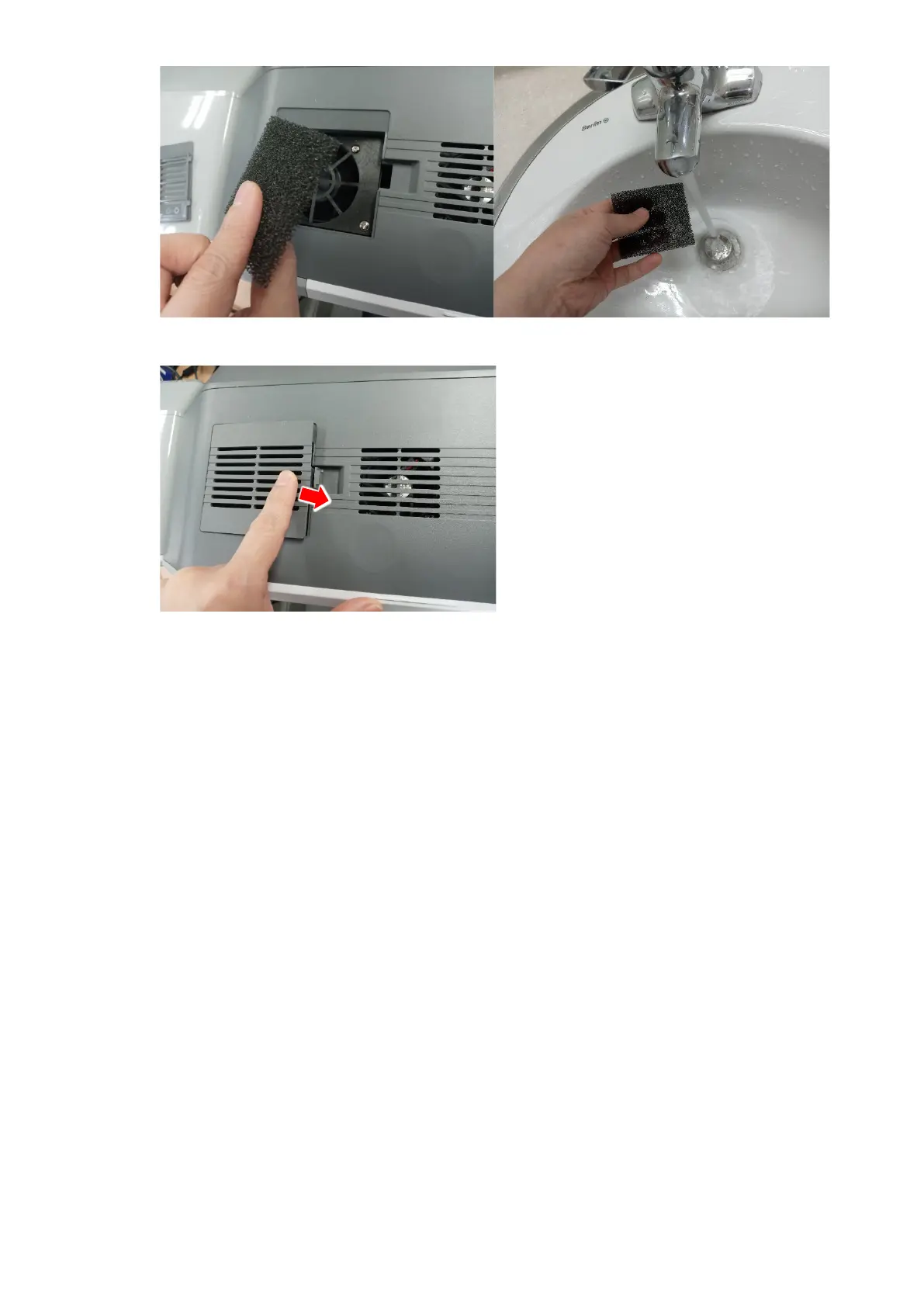 3. After installing the filter, press the protective cover in the direction of the arrow to close it.