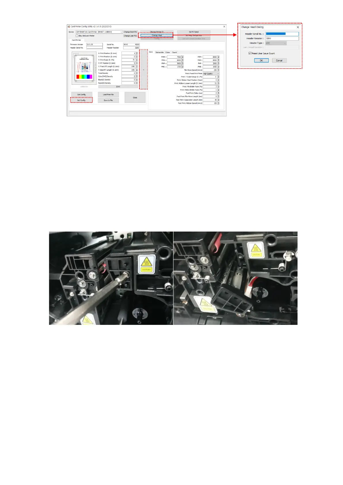 Figure 94 Printer head setup