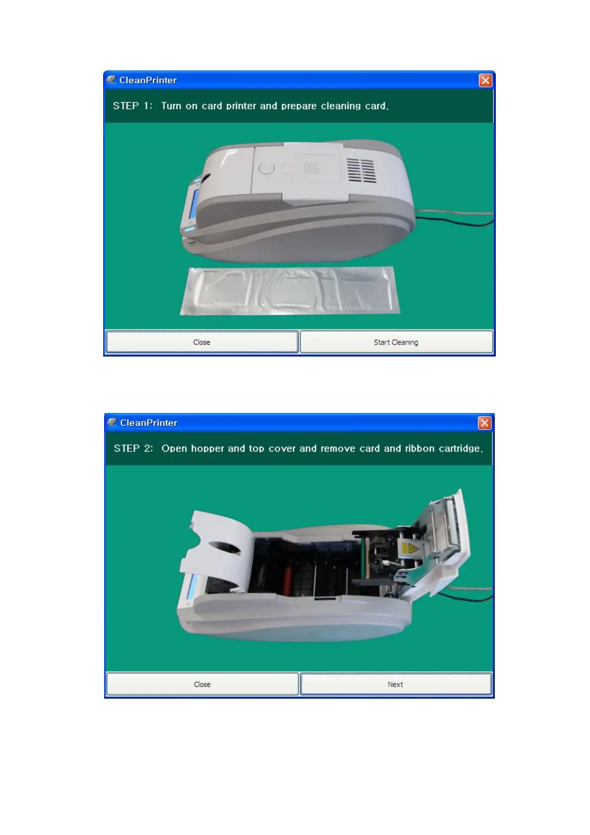 idp Smart Series - Printer cleaning Step 1; Printer cleaning Step 2