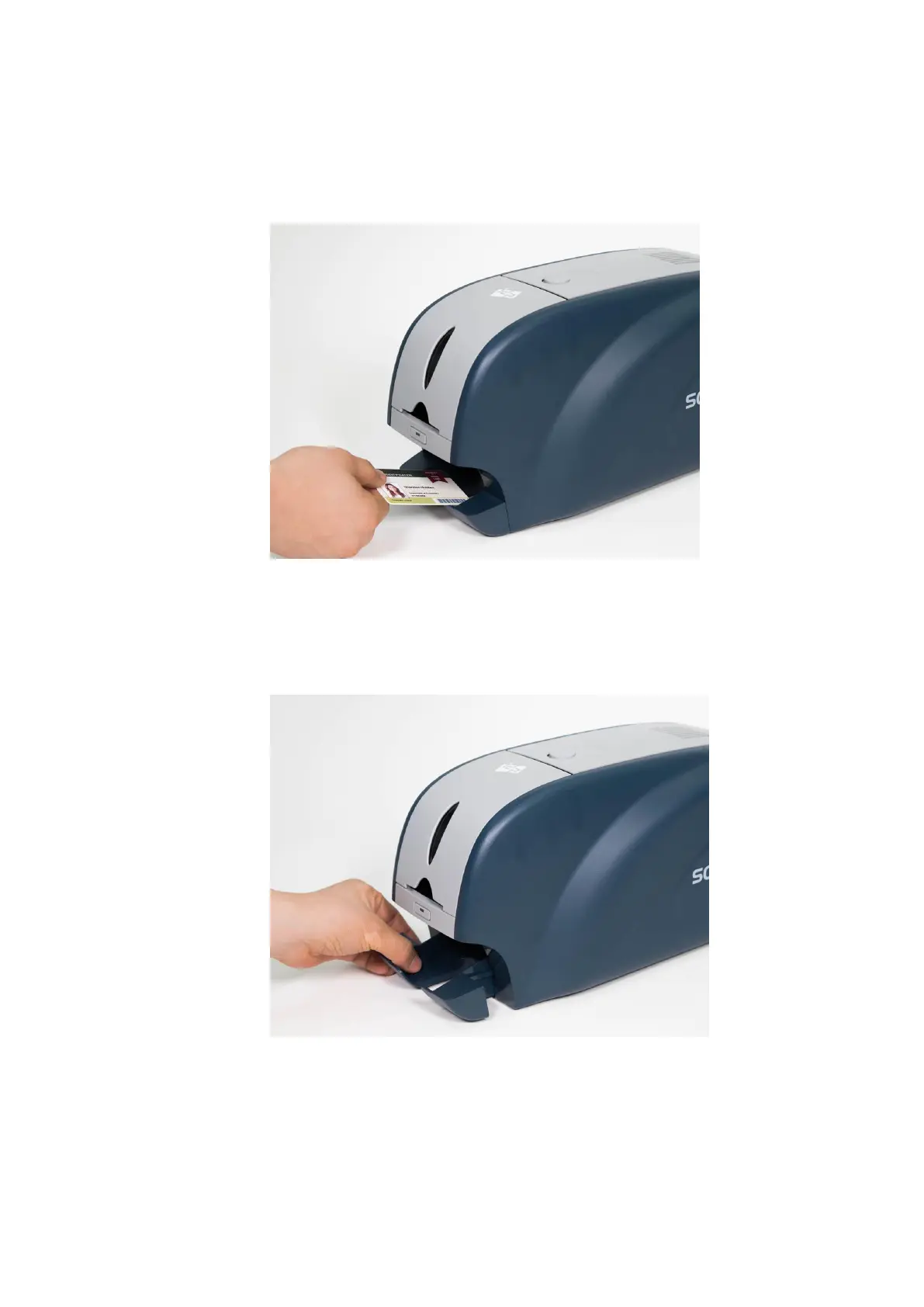 Printed cards are passed out to the stacker of front bottom side of SOLID-310 printer.