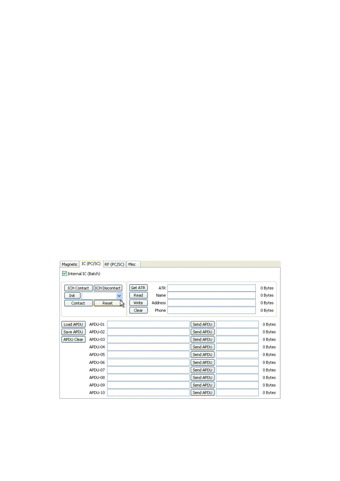 “Reset” is to finish the function electrically. After “Contact”, you can run “Get ATR”, “Read”,