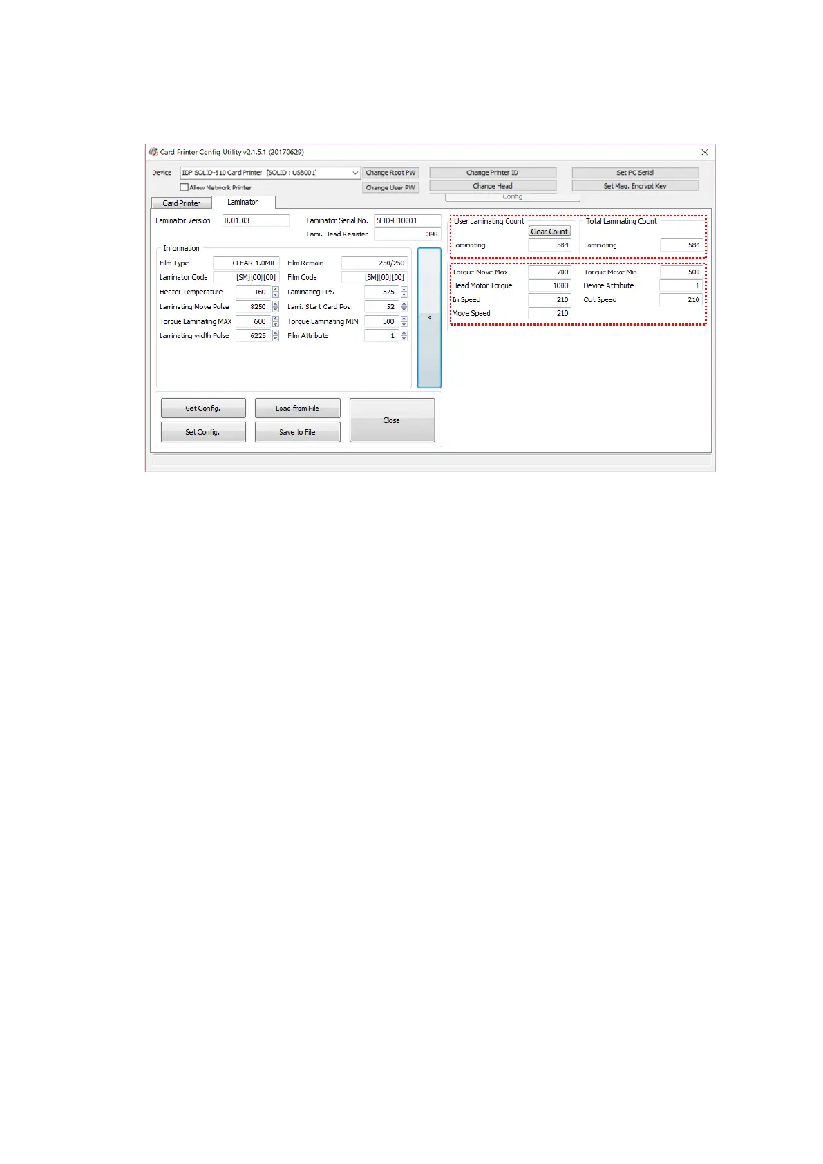Figure 71 CardPrinterConfig – Laminator Advanced Setup