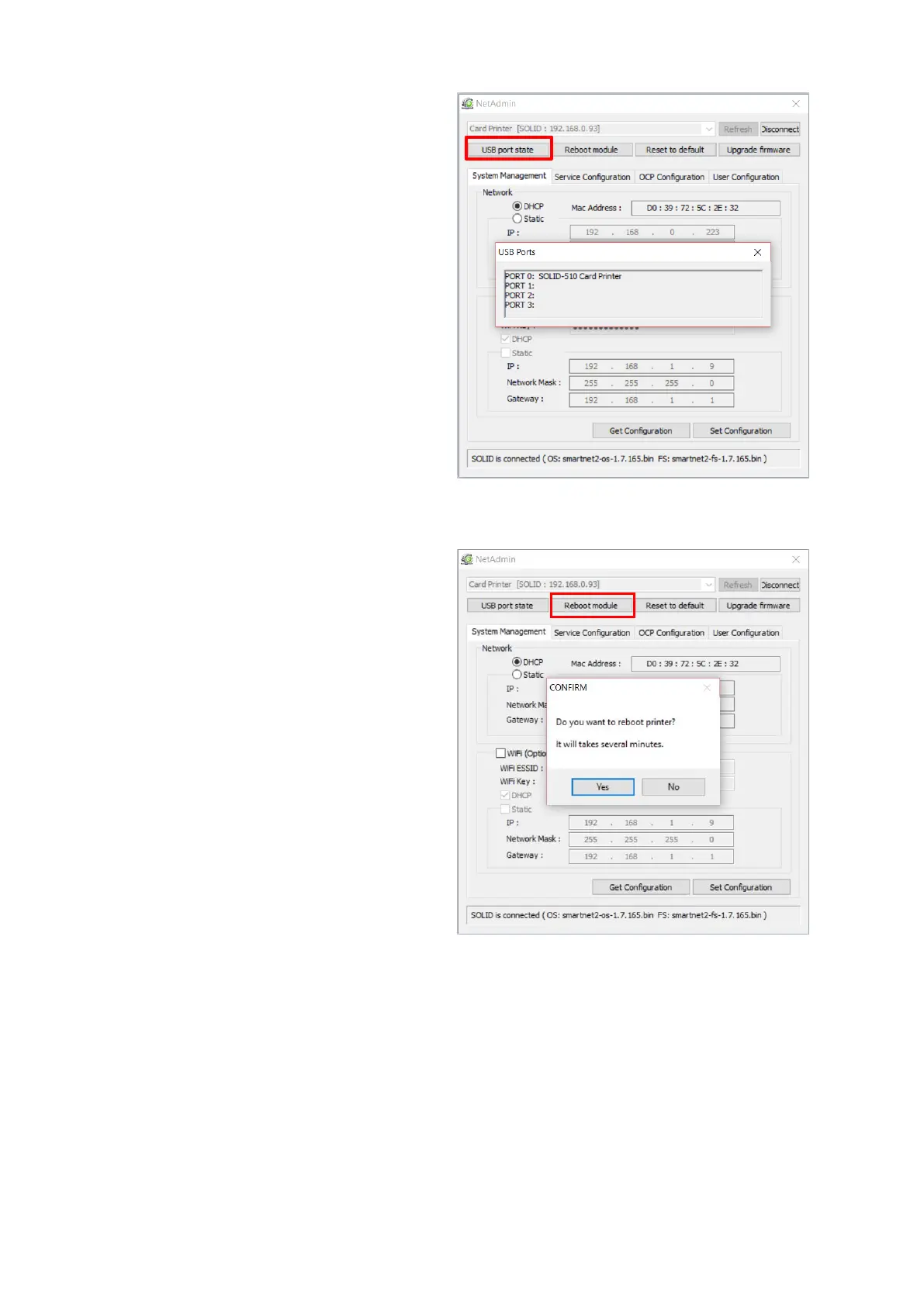 Figure 79 Rebooting the network module