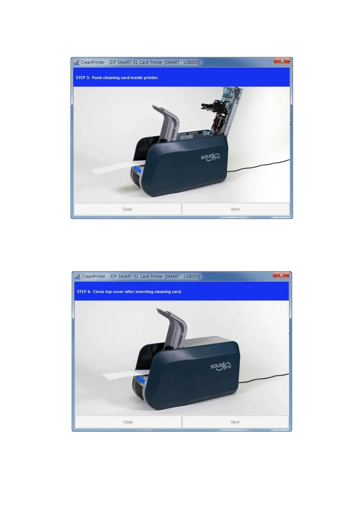 the top cover is closed, cleaning card will be moving back and forth to clean.