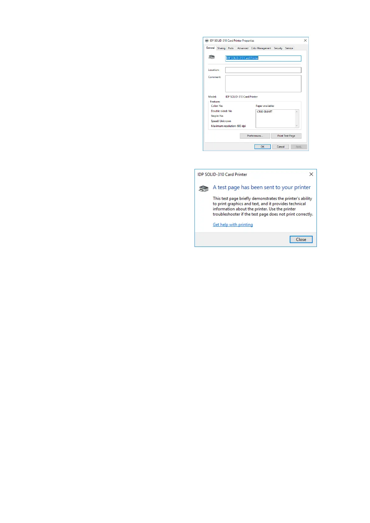 SOLID-310 Card Printer Properties”