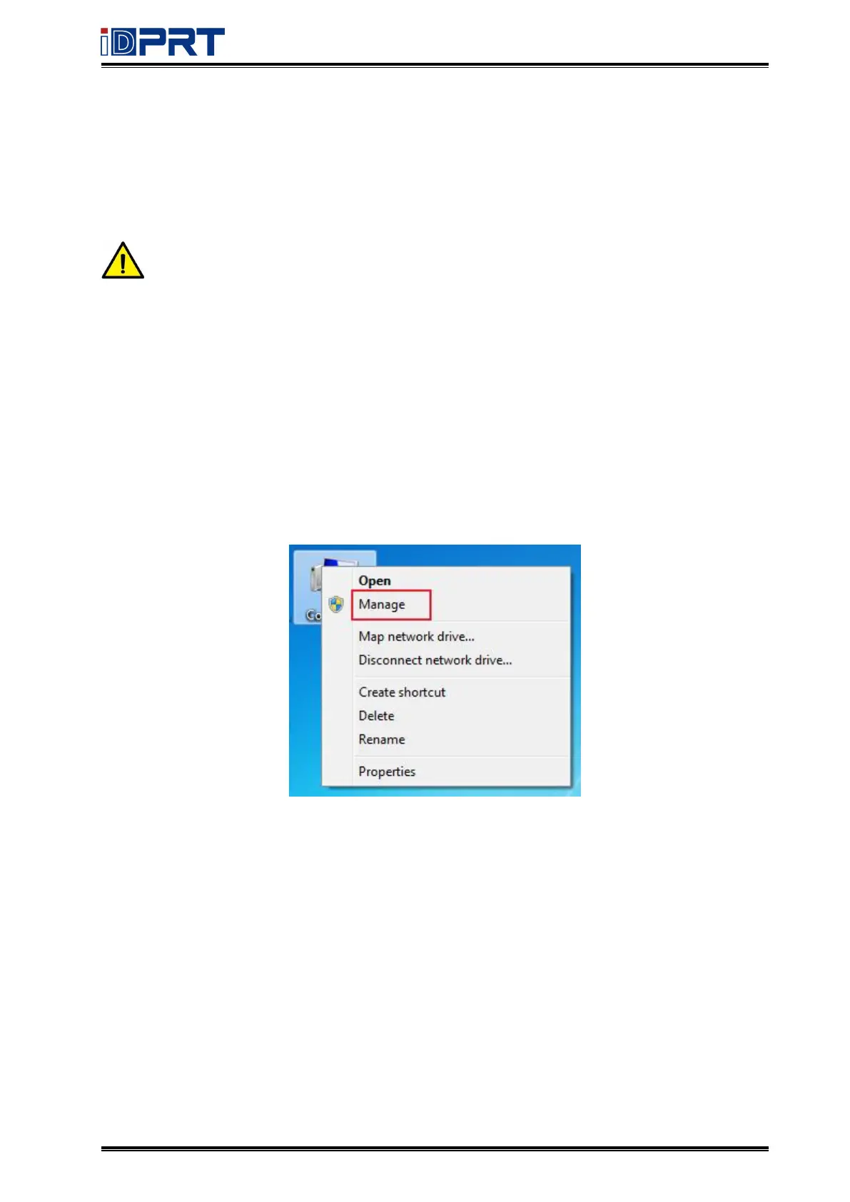 1. Right click on the computer desktop and select “Manage”.