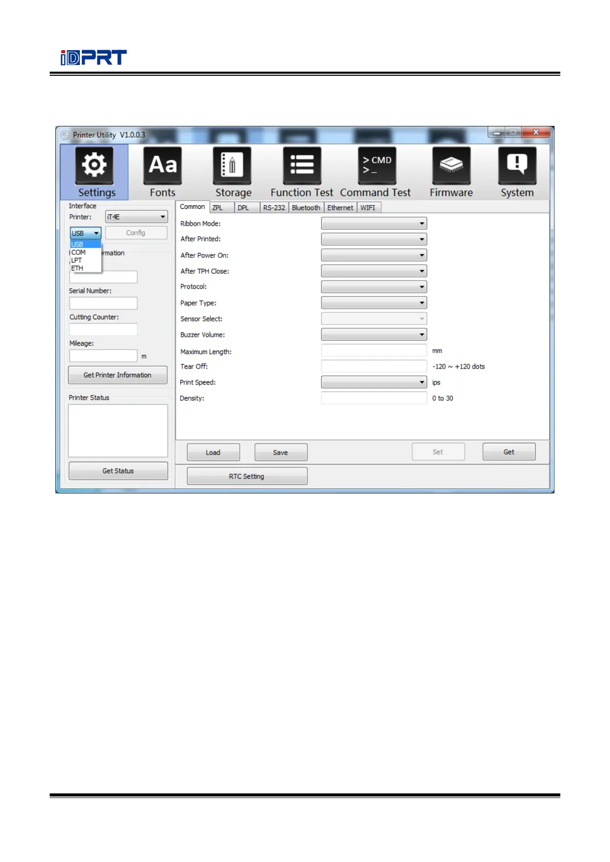 (1) Set up the interface needed. (range: USB, COM, LPT, ETH)
