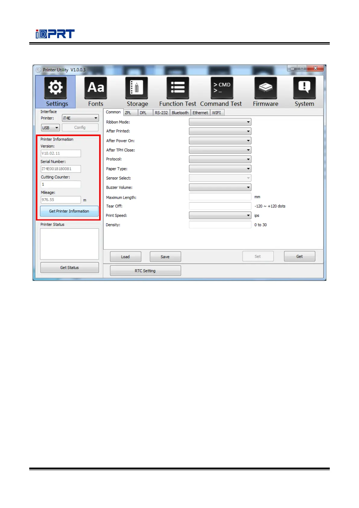(2) Click “Get Printer Information”, and printer information will show in the above.