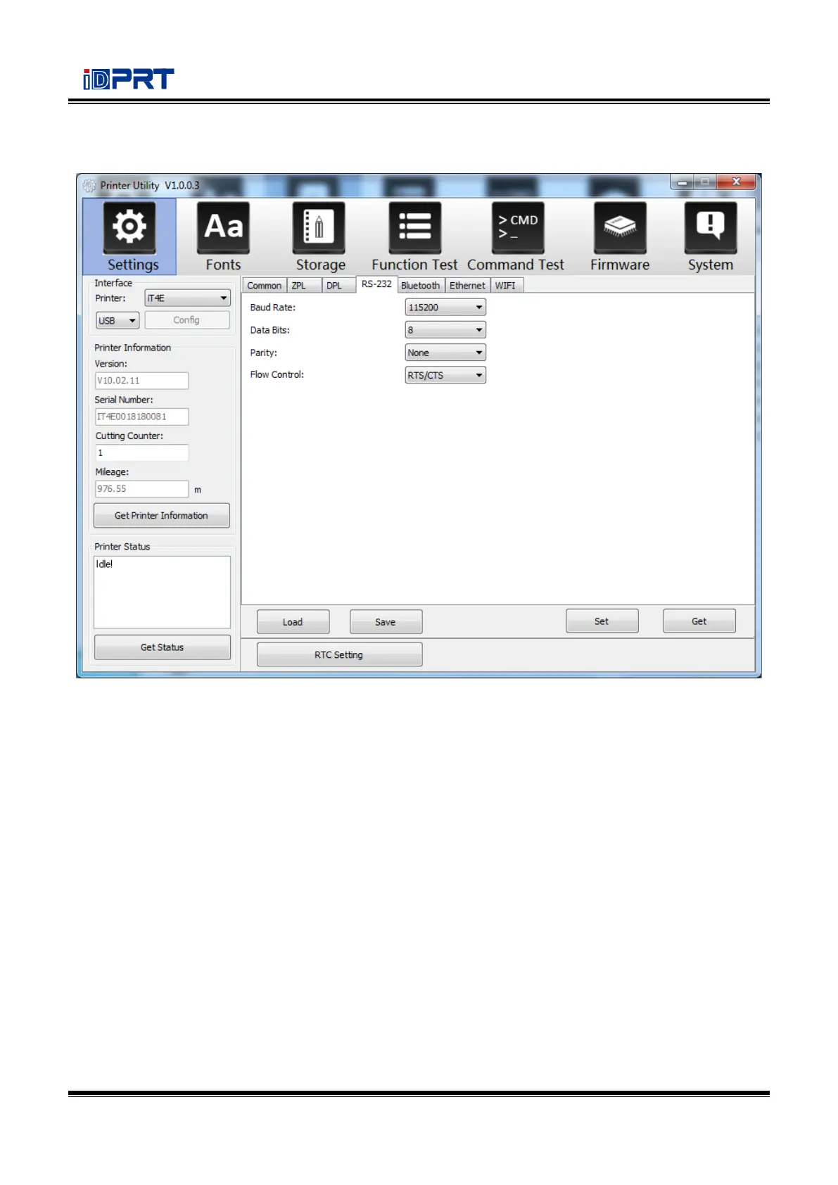 (5) Click “RS-232, then set up the baud rate, data bits, parity and flow control.