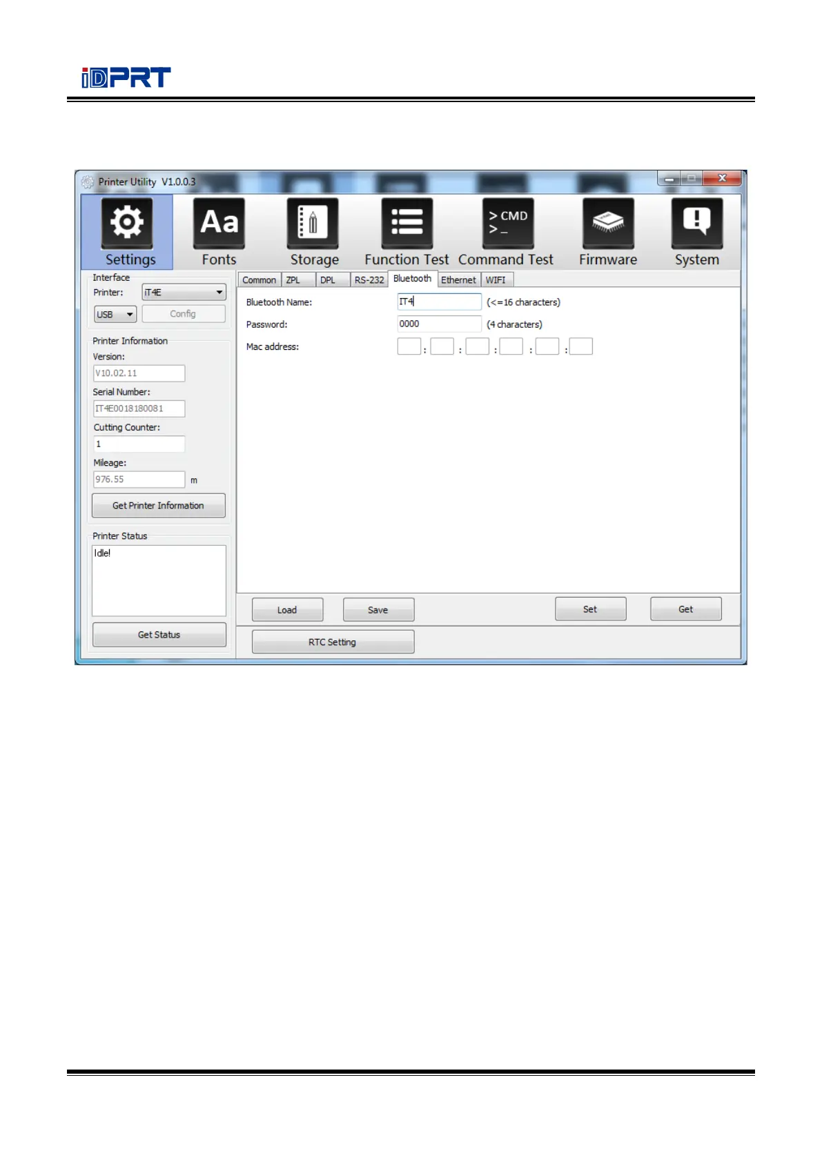 (6) Click “Bluetooth”, then set up the Bluetooth name and password. Click “Getto gain the values