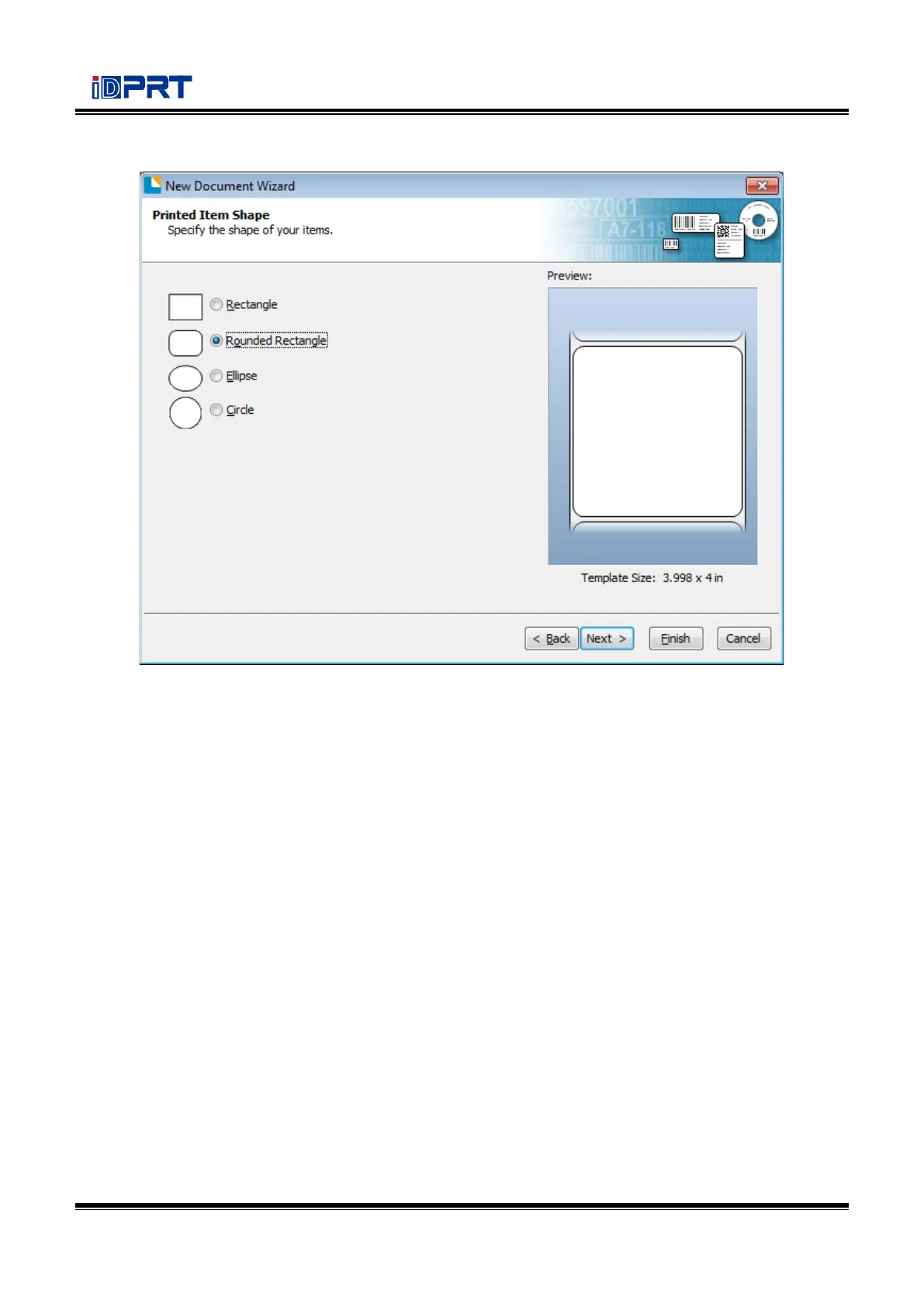 7.Choose the item shape, then click “Next.