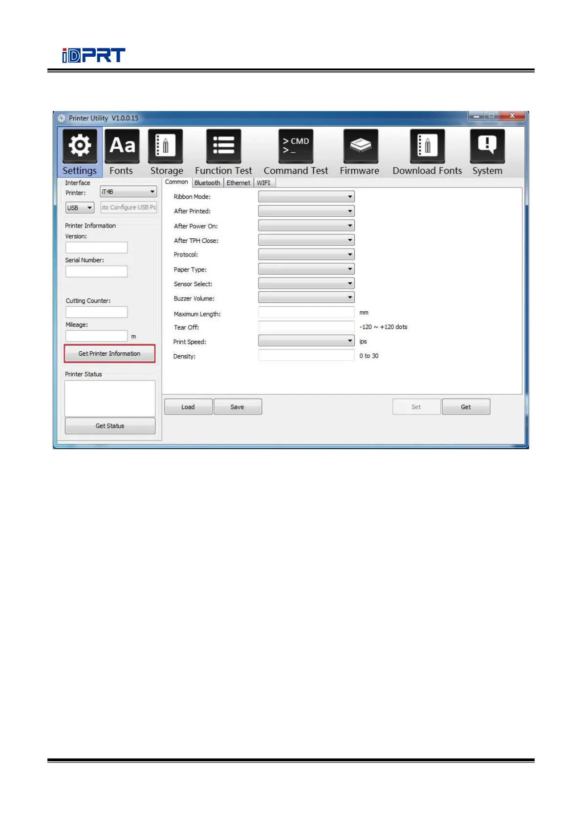 (2) Click “Get Printer Information”, and printer information will show in the above.