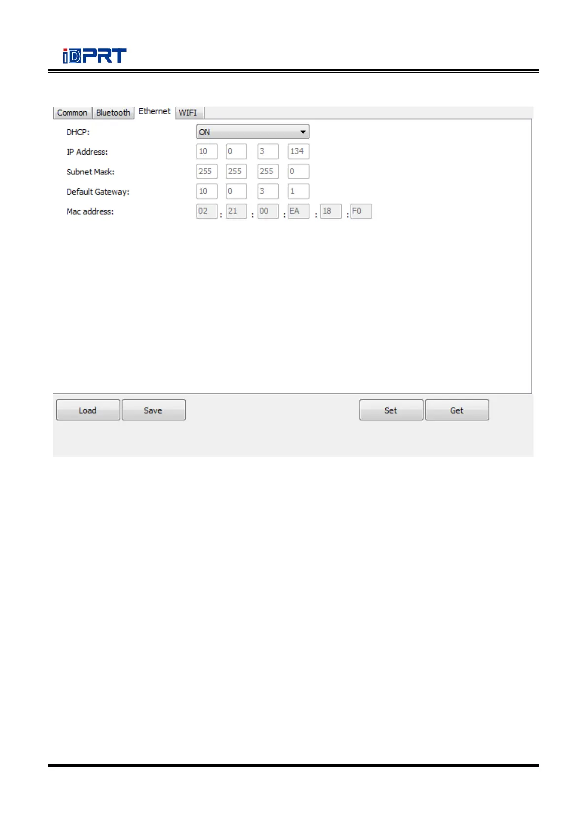 (6) Click “Ethernet, then click “Get” to gain the relevant values.