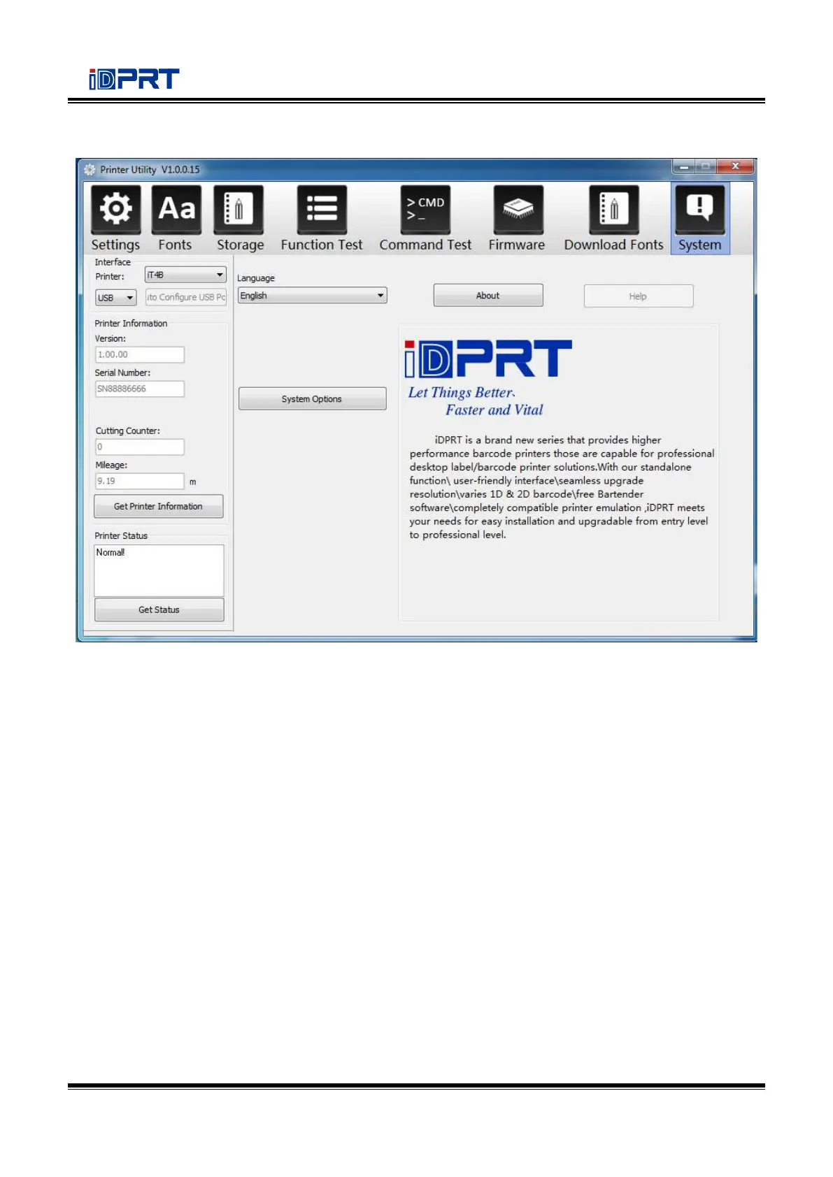 6.Click “System”. Click “language” and choose the language of printer utility.