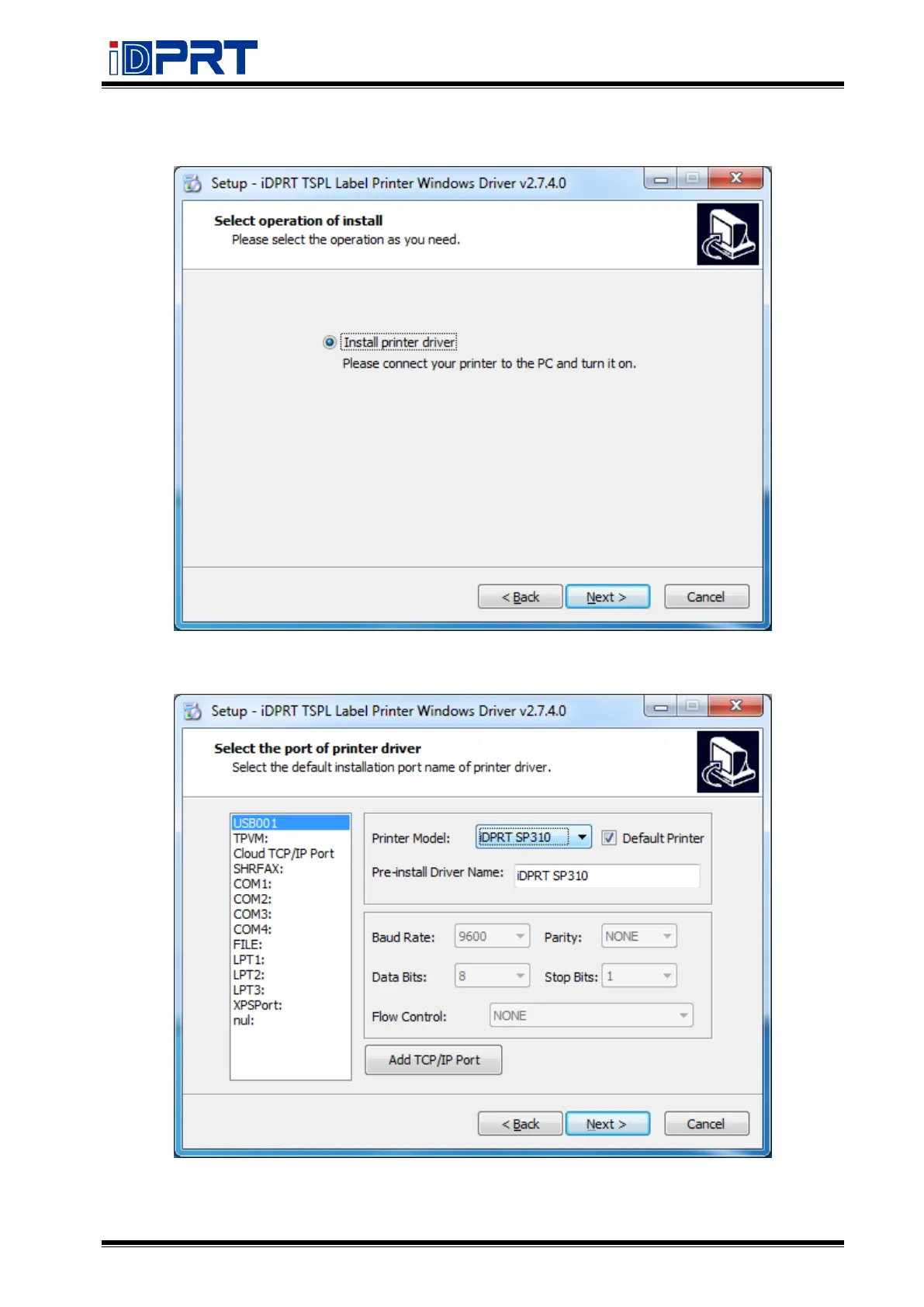 6. Select the default installation port name of the printer driver, then click “Next”.