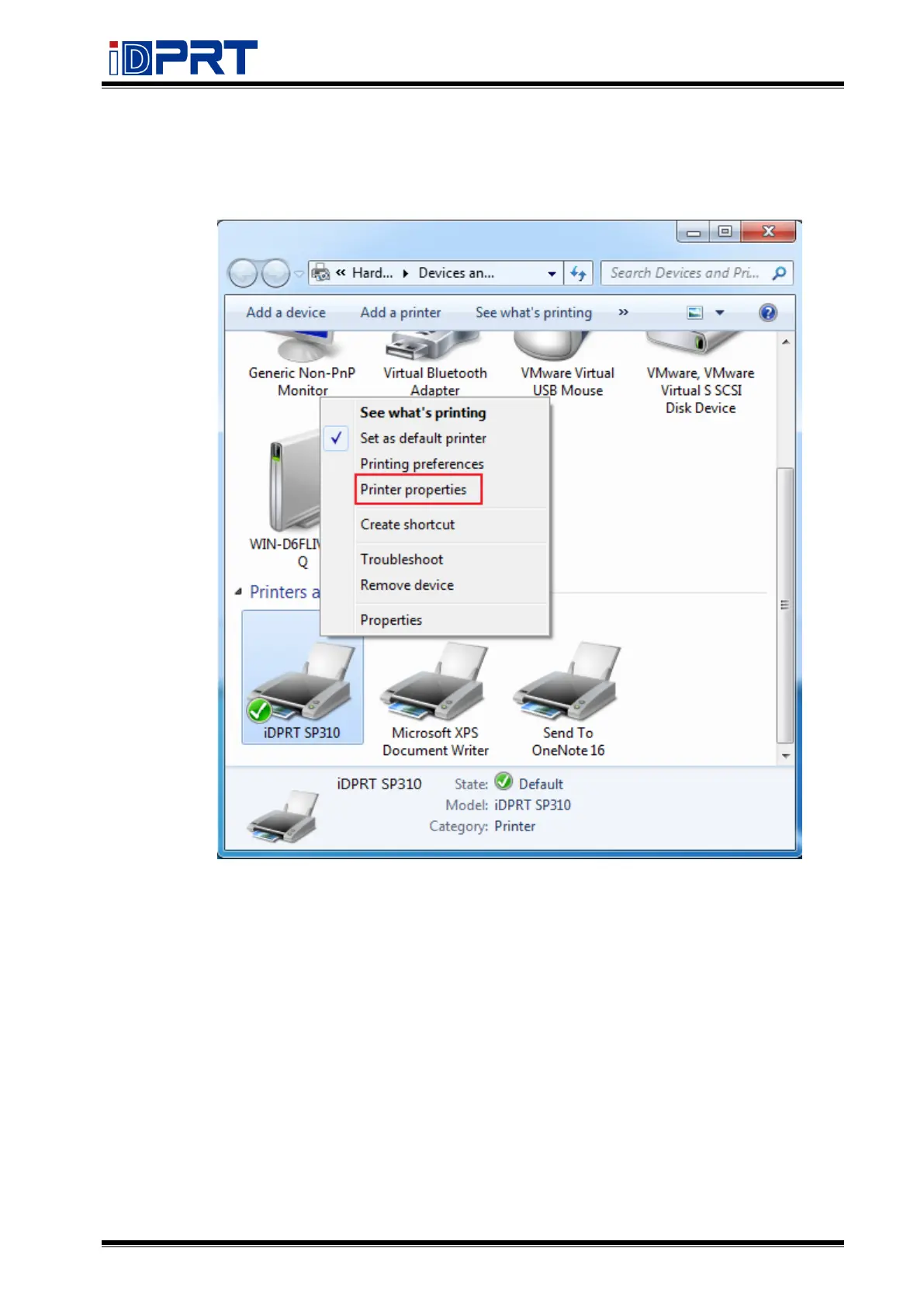 1.Click Start Devices and Printers. Right-click the icon and select Printer properties.