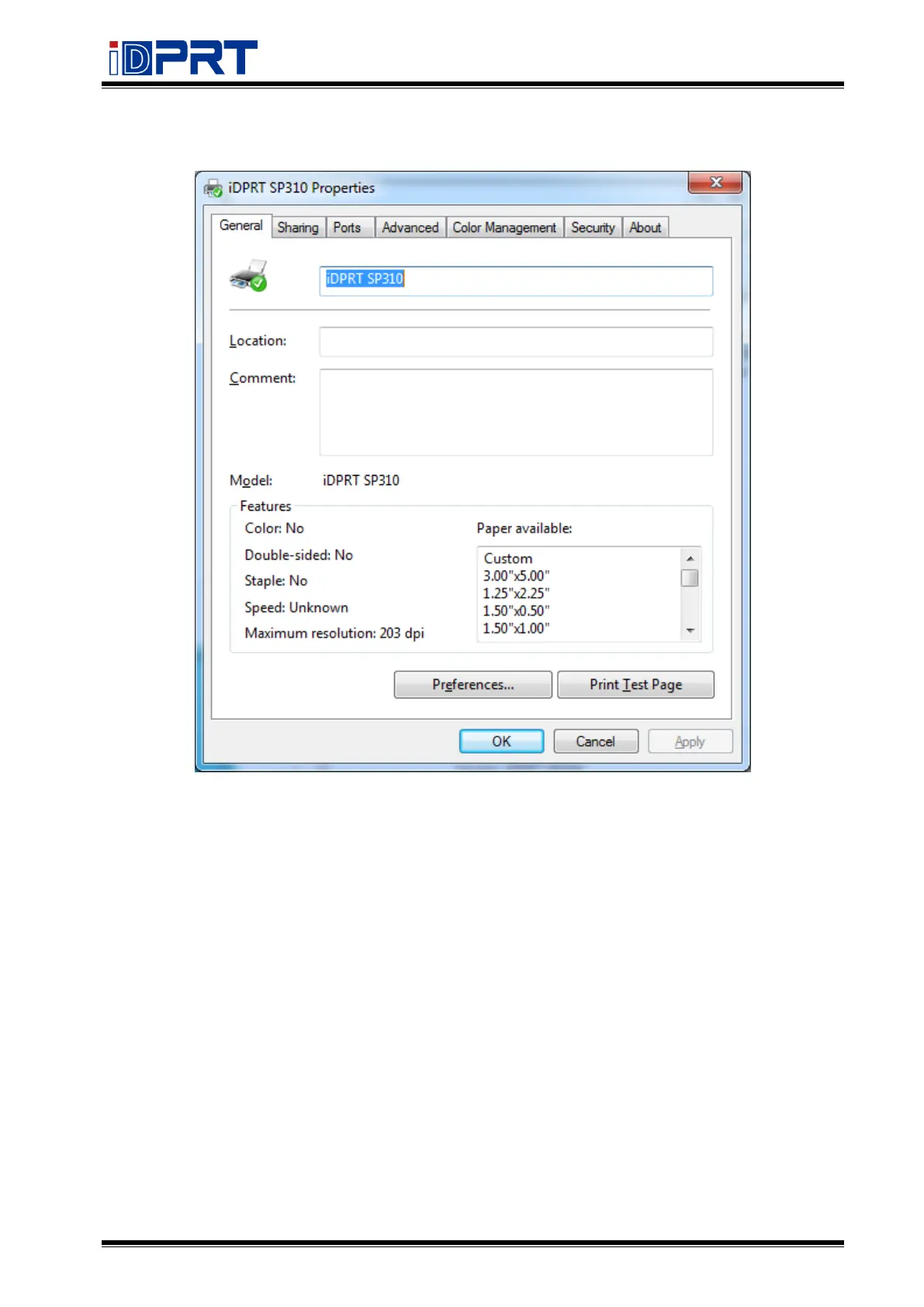 Other manuals for iDPRT SP310