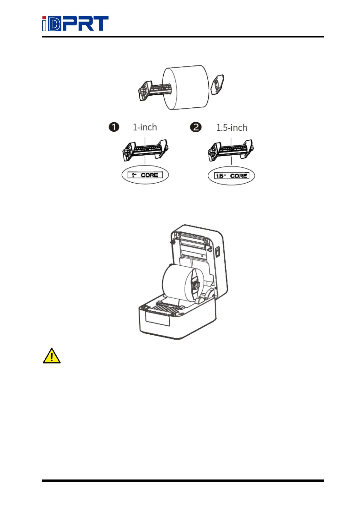 Note: When using the 1-inch paper roll, the font of "1-CORE" should be upward; when
