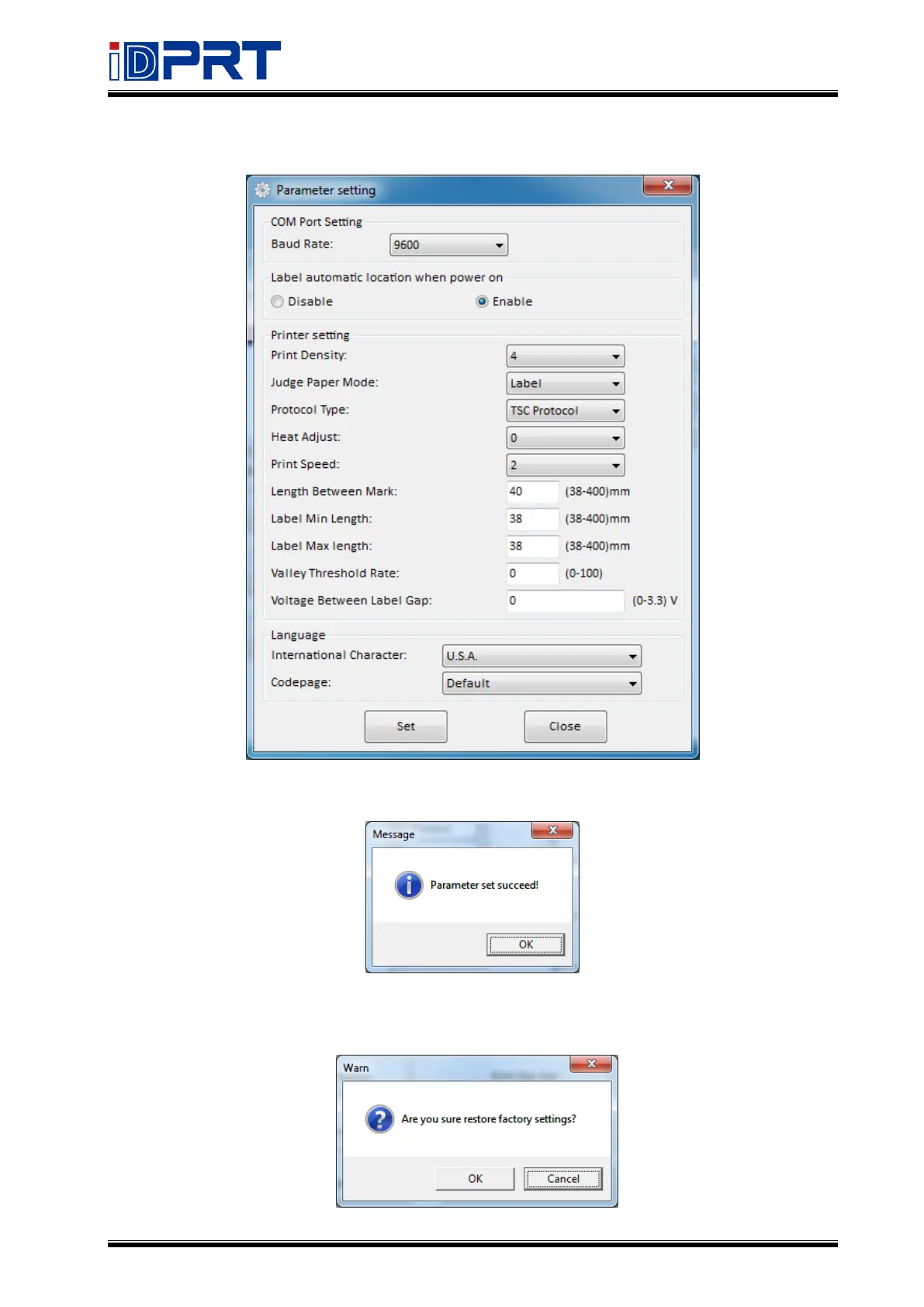 ●Click “Parameter Setting” to set the interface, language, and print according to your needs.
