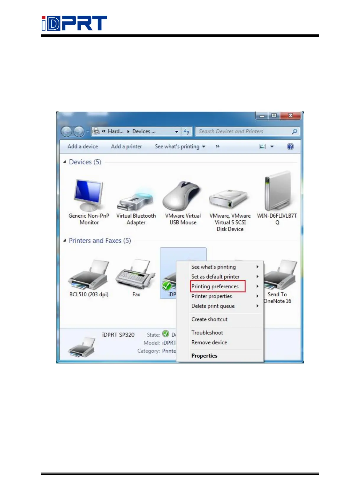 1.Click “Start” → “Devices and Printers”. Right-click the icon and select “Printing preferences”.