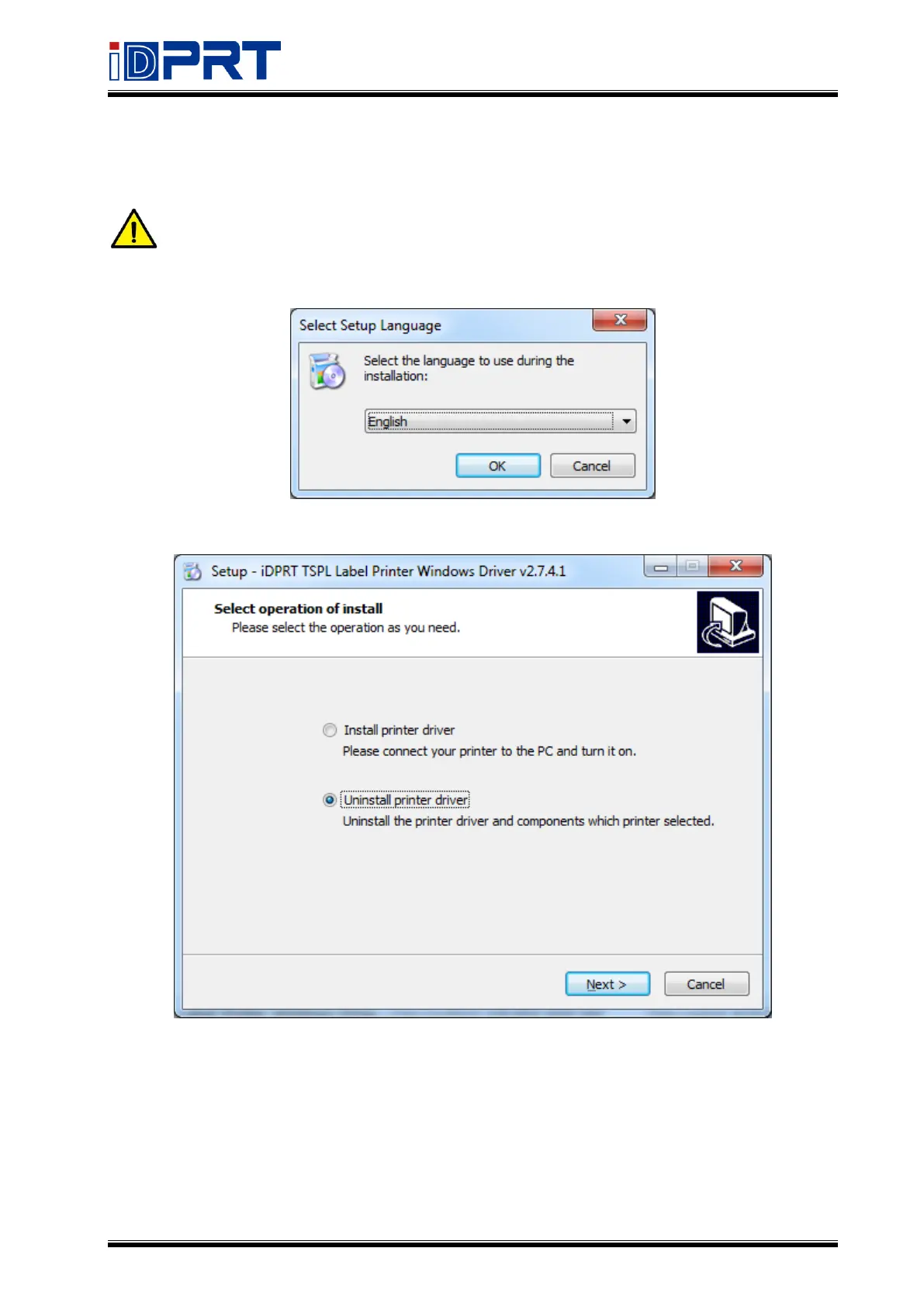 2.Select “Uninstall printer driver, then click “Next.