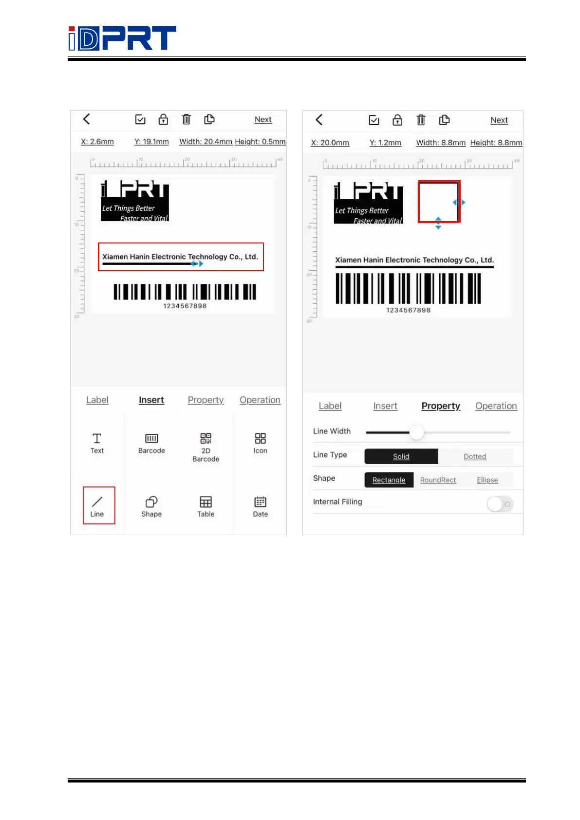 9.Click Line and Shape, user can set up the width, direction and type in Property.