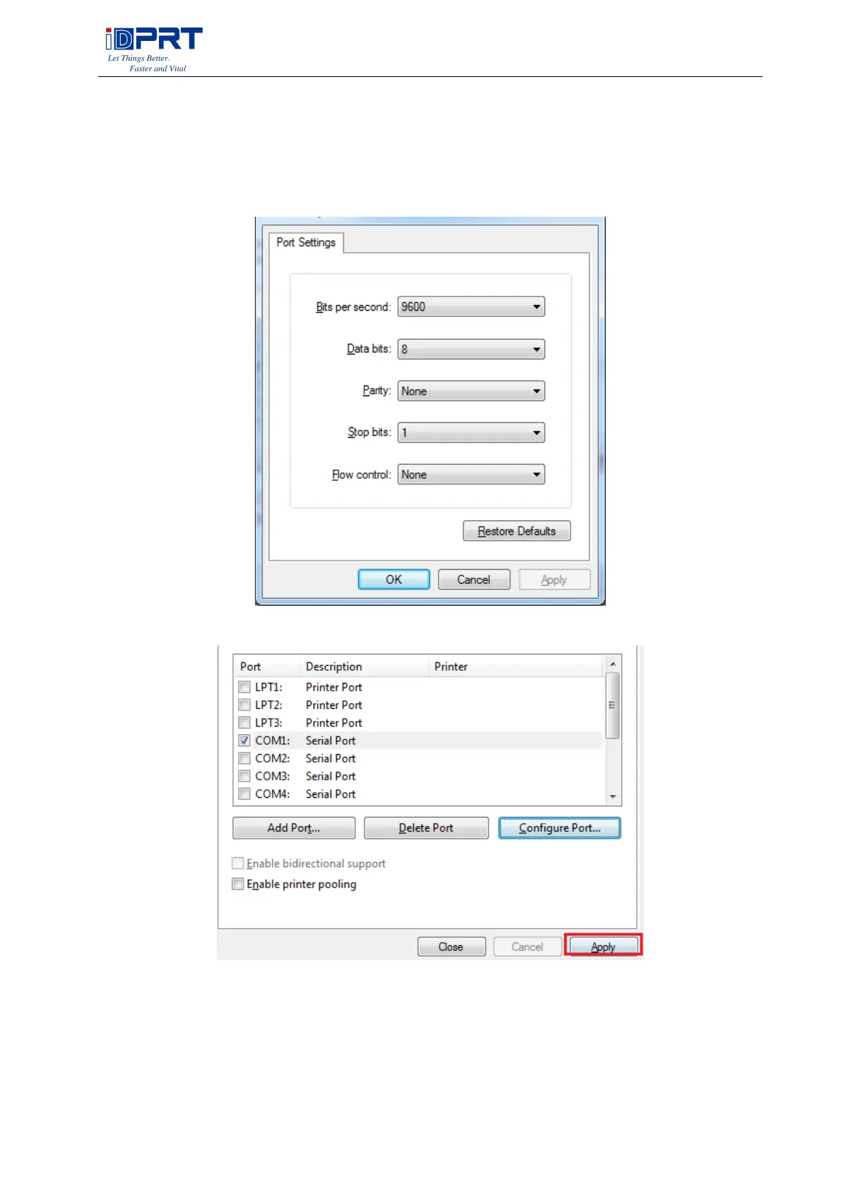 2) After opening the Configure Port, you can view the port data by printing the self-test page