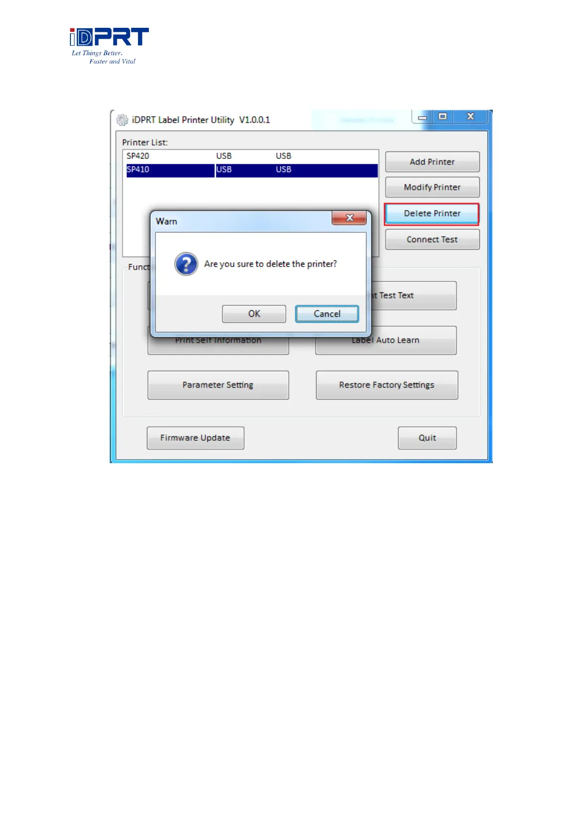 ●Click “Delete Printer, click “OK” to delete the printer.