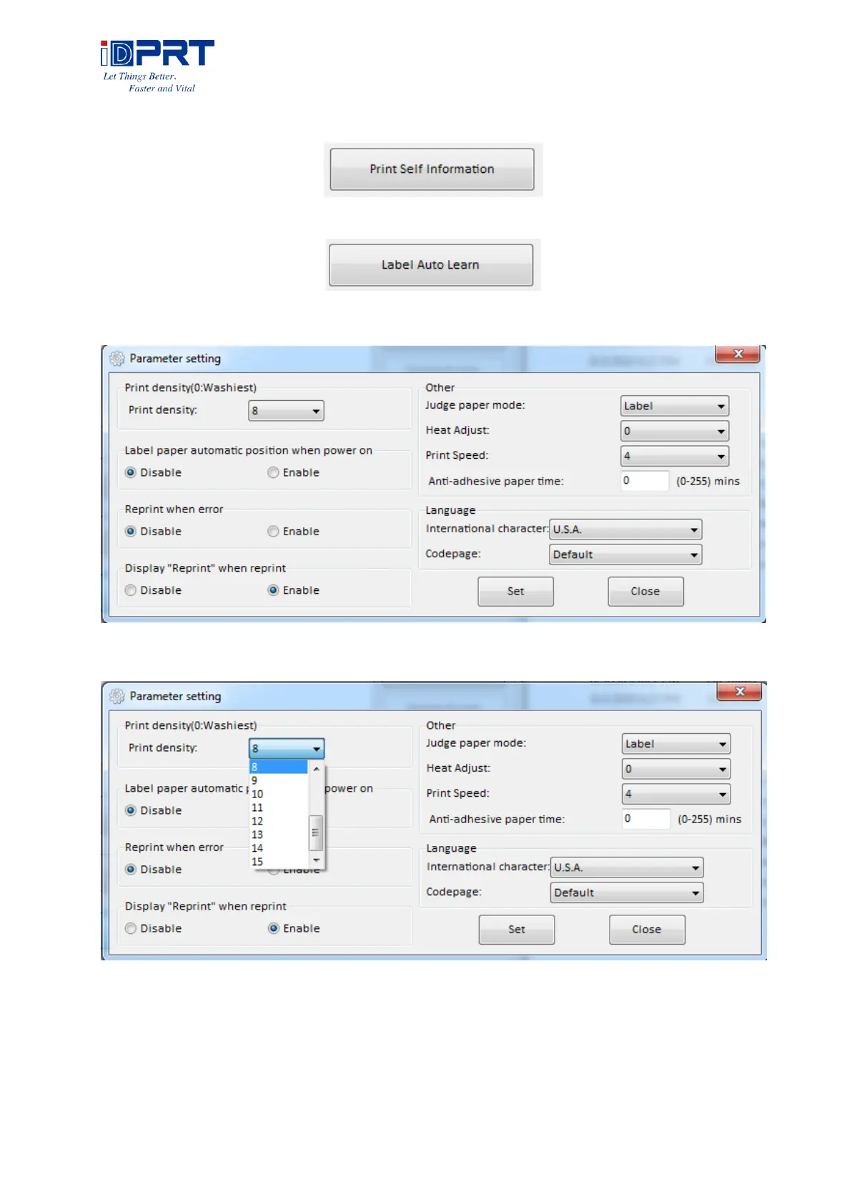 1) Print density (choose range:0~15):