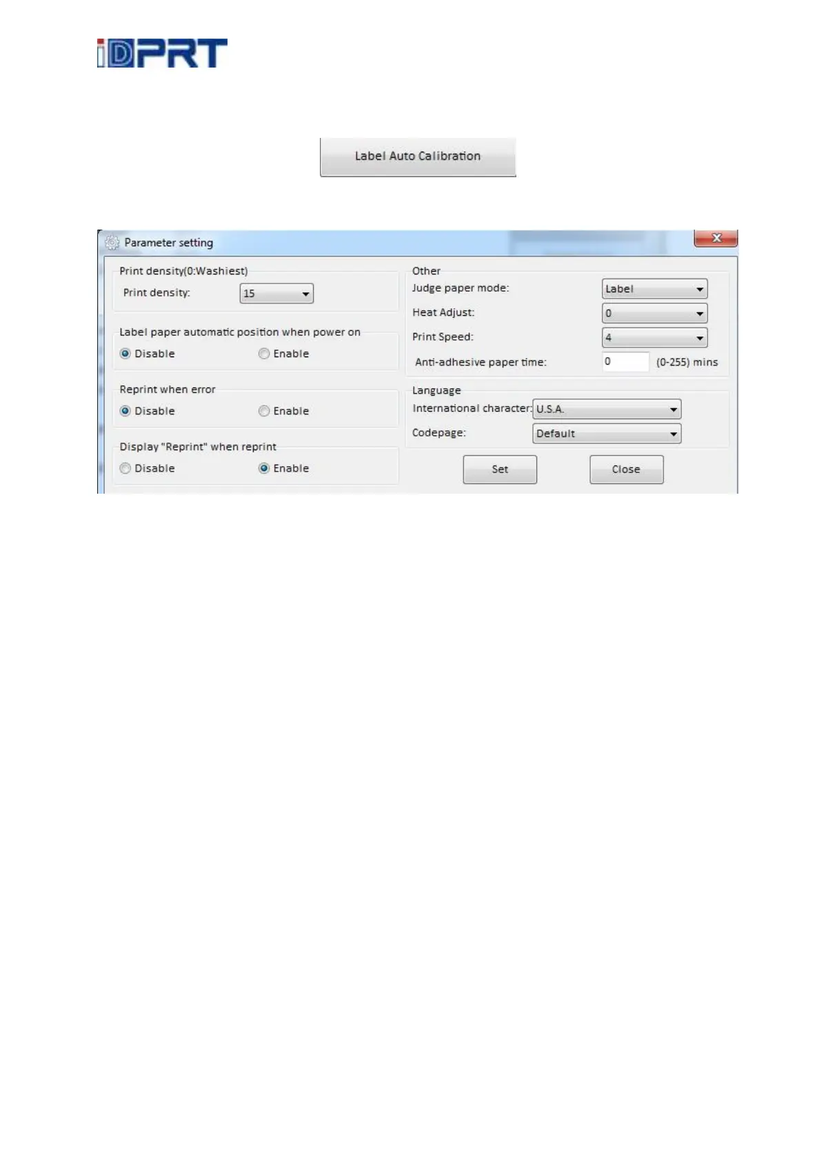 Click “Label Auto Calibration”, then printer will carry out the calibration.