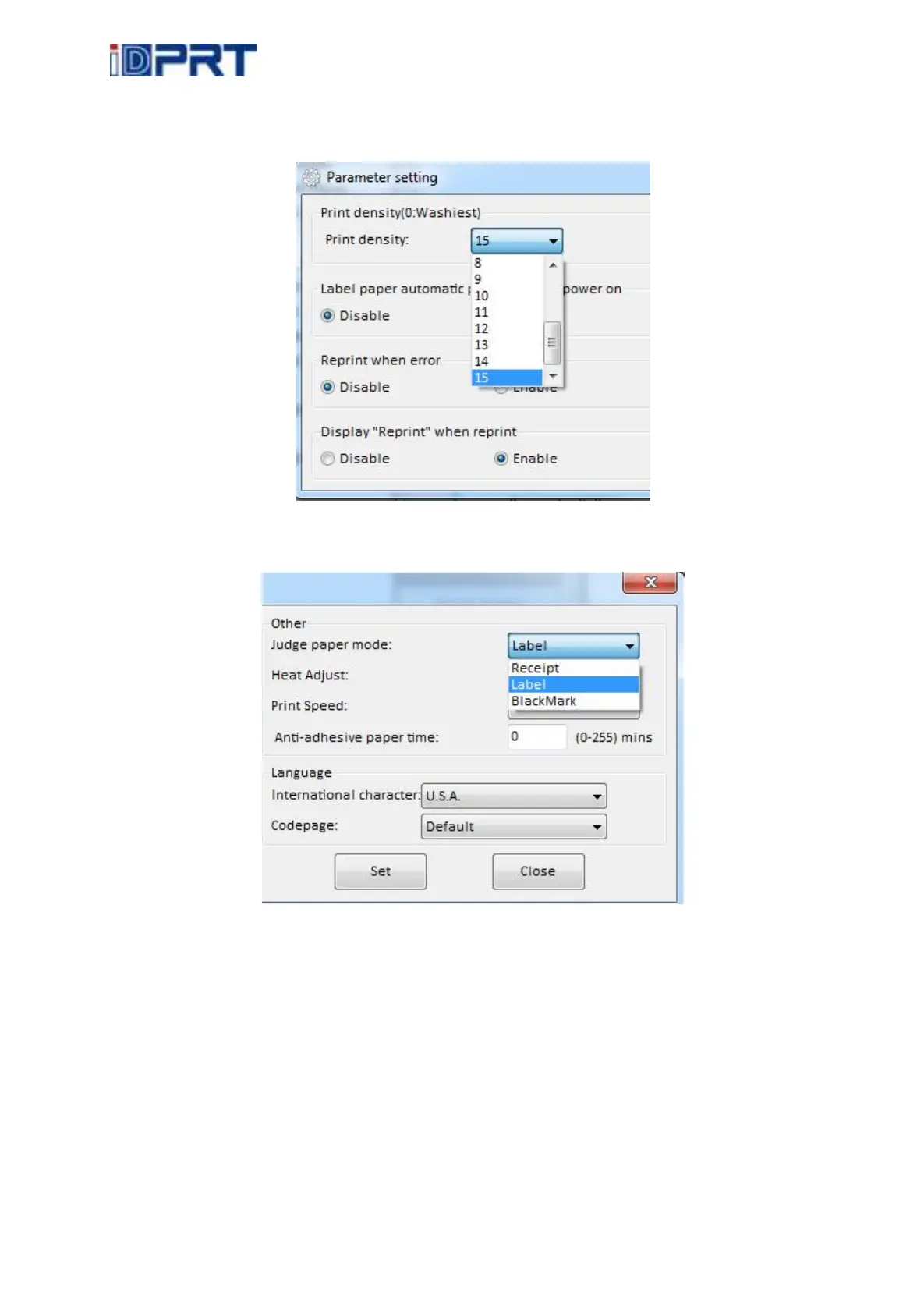 1) Print density (choose range:0~15):